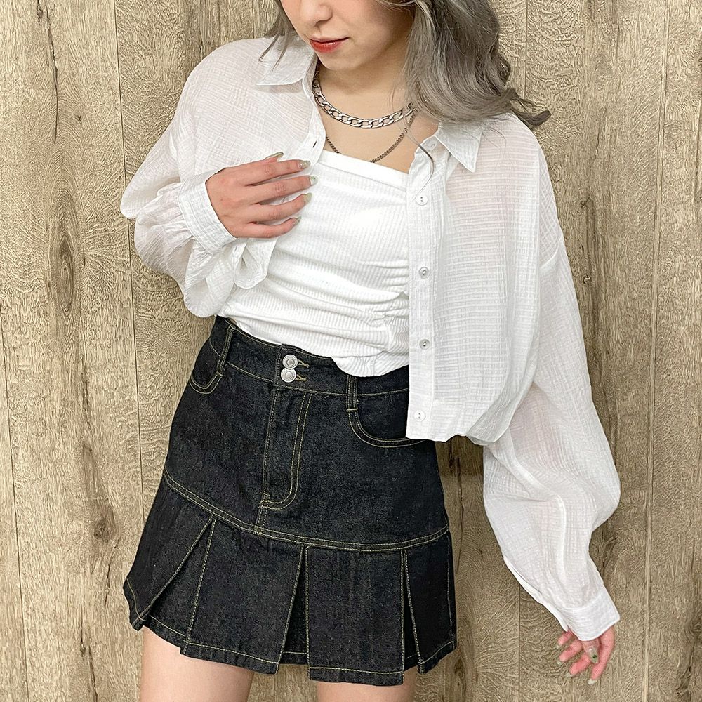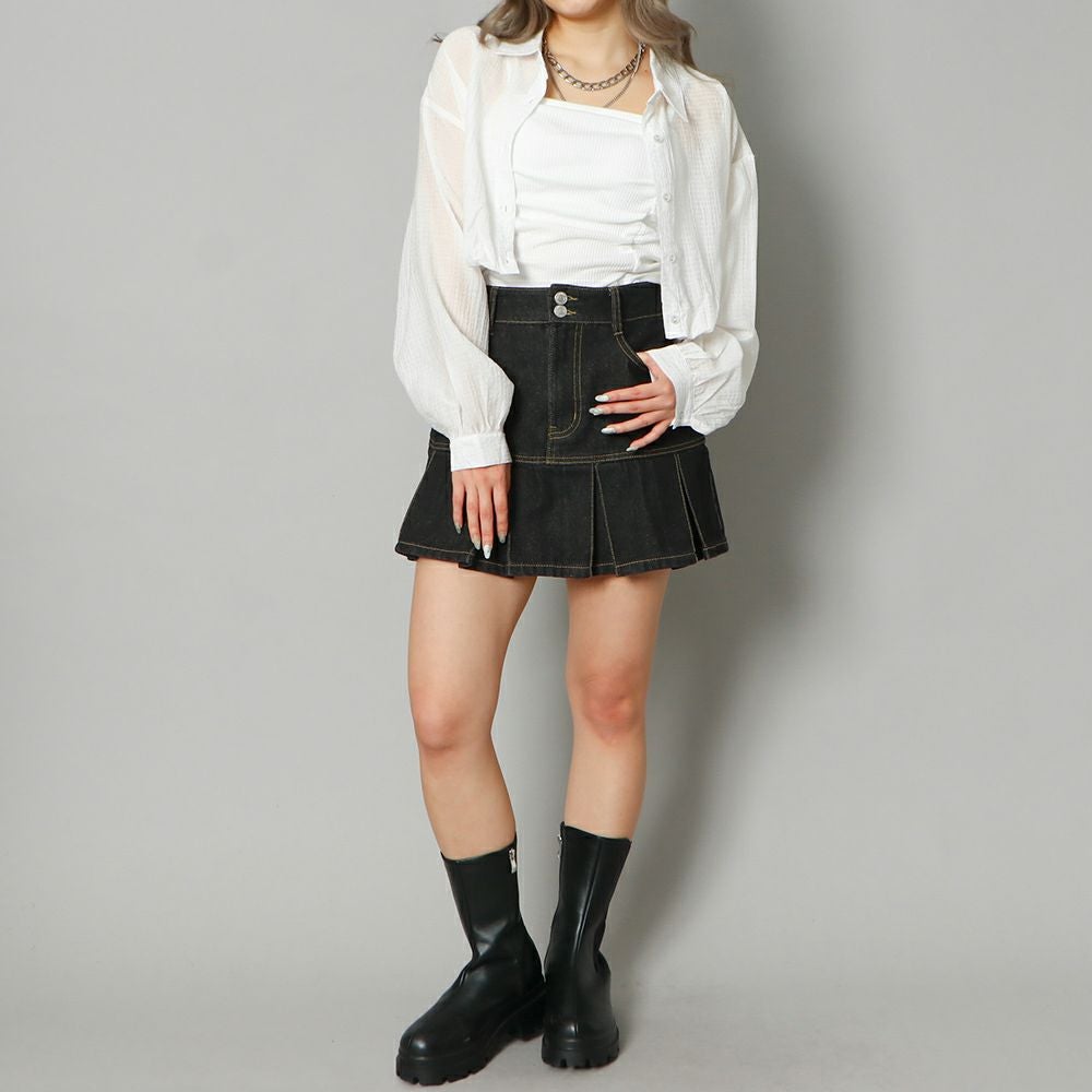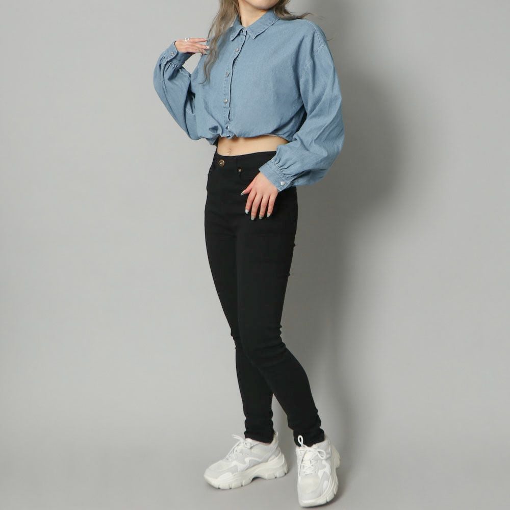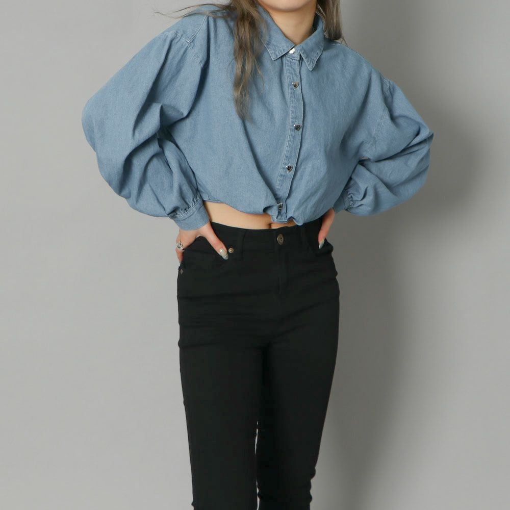 ハートボタンデニムショートシャツ