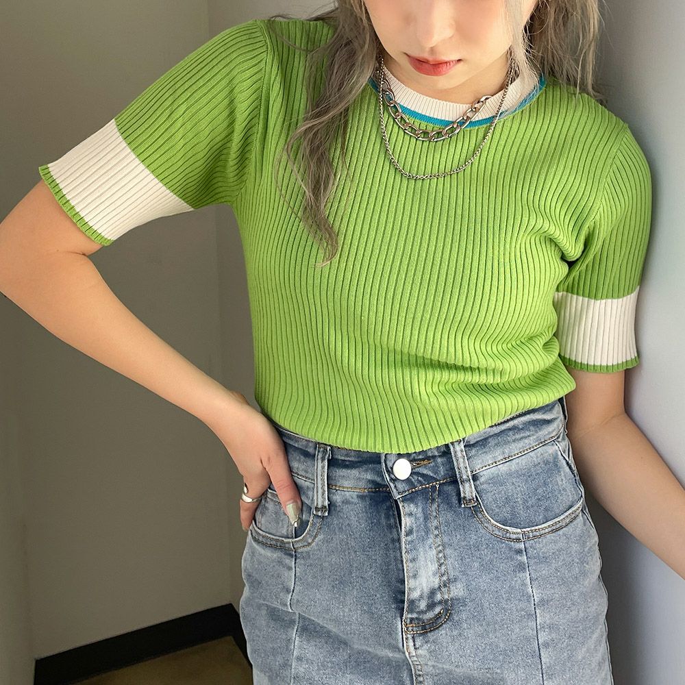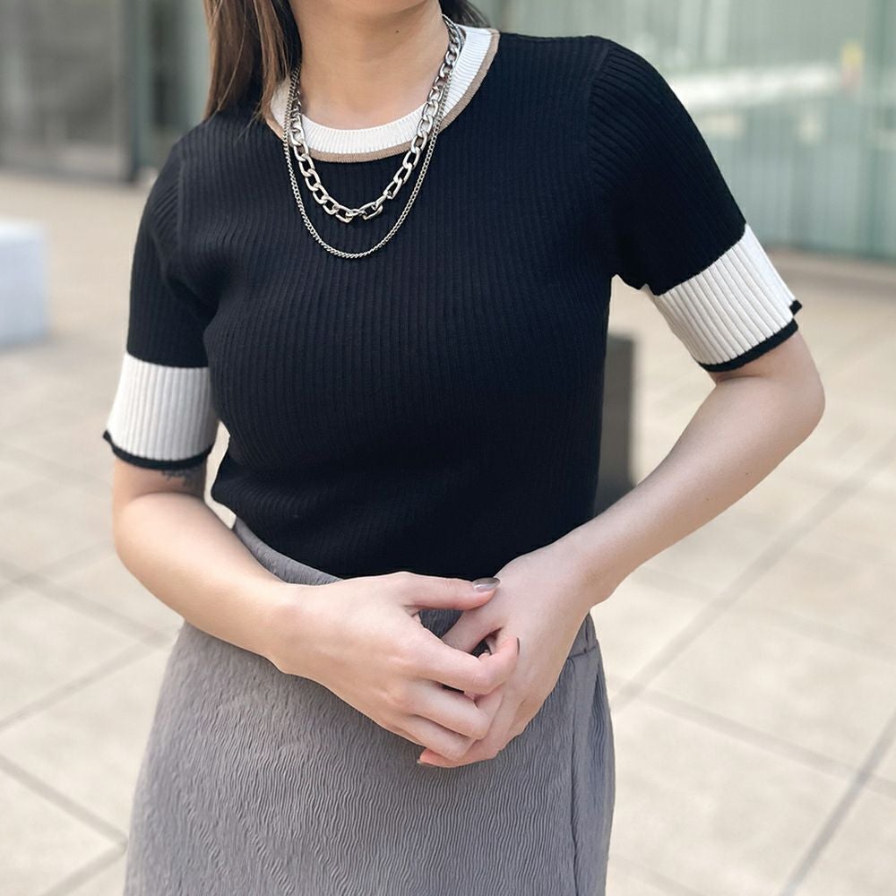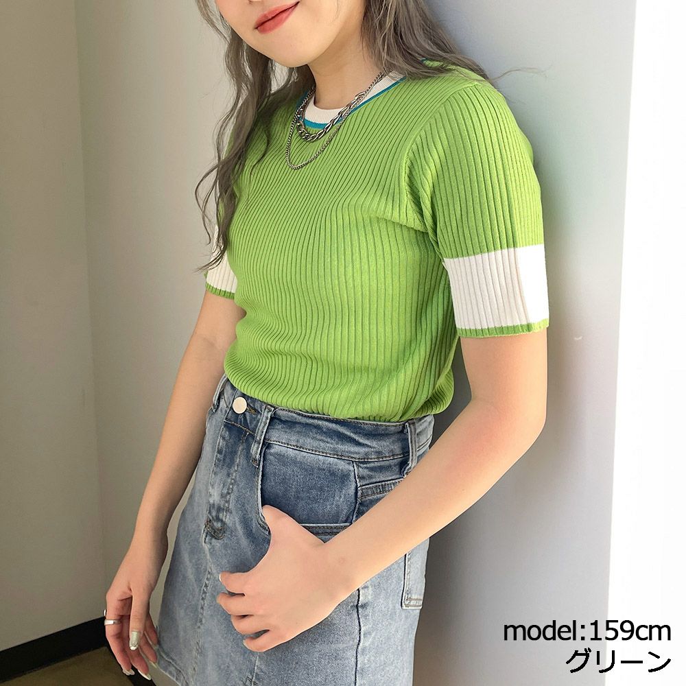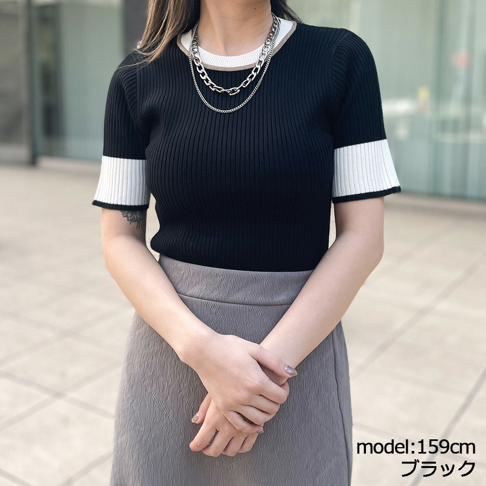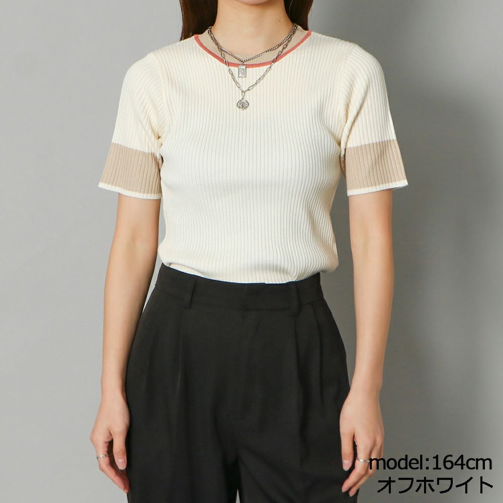 配色半袖ニット