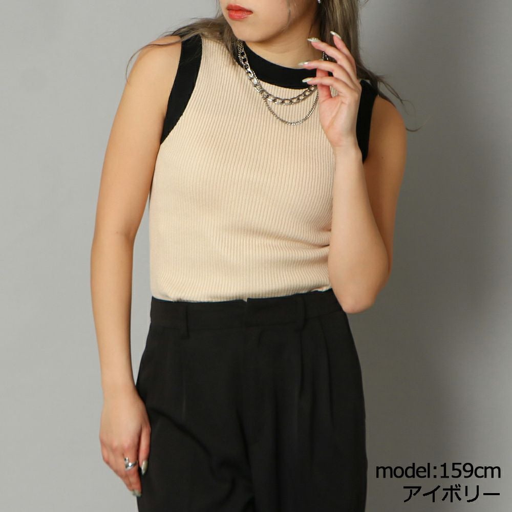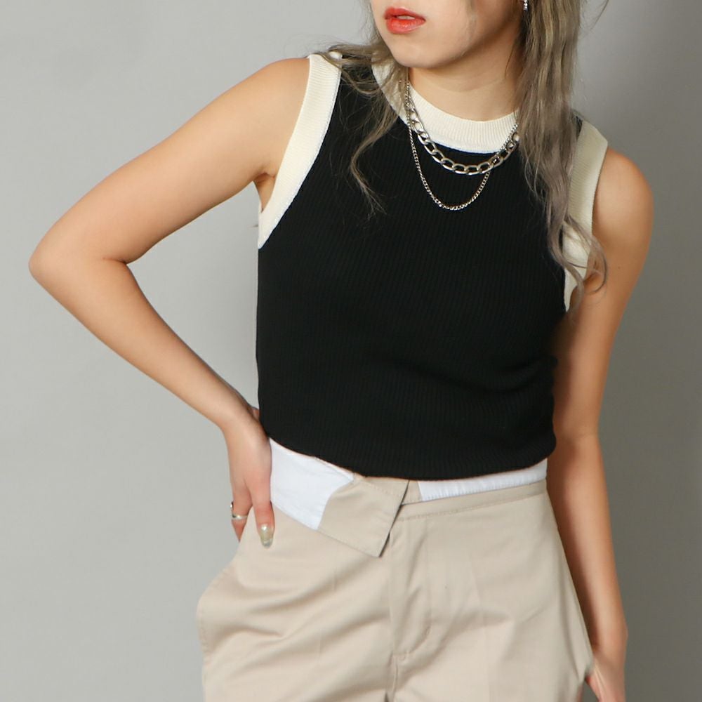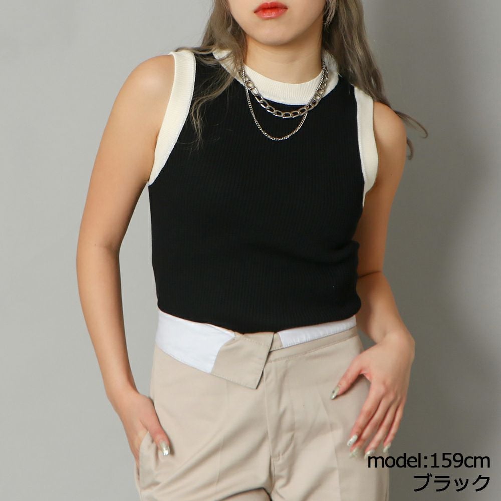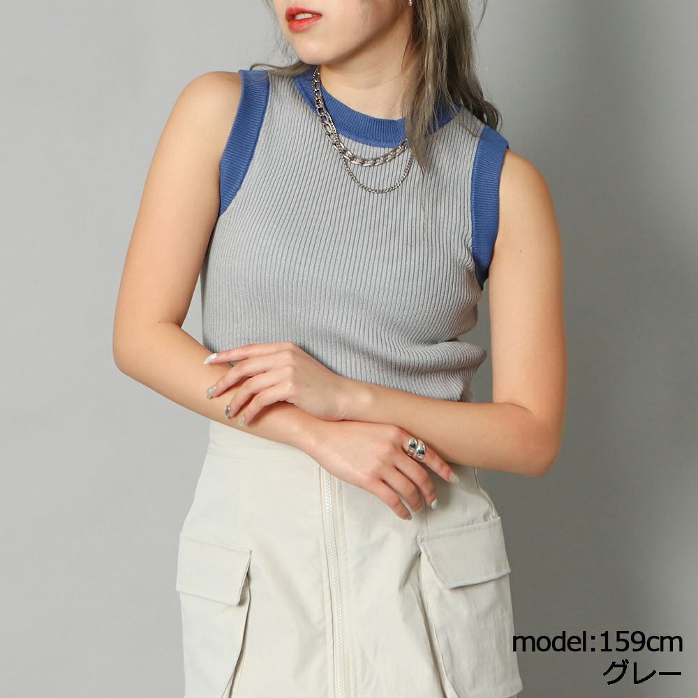 配色リブタンク