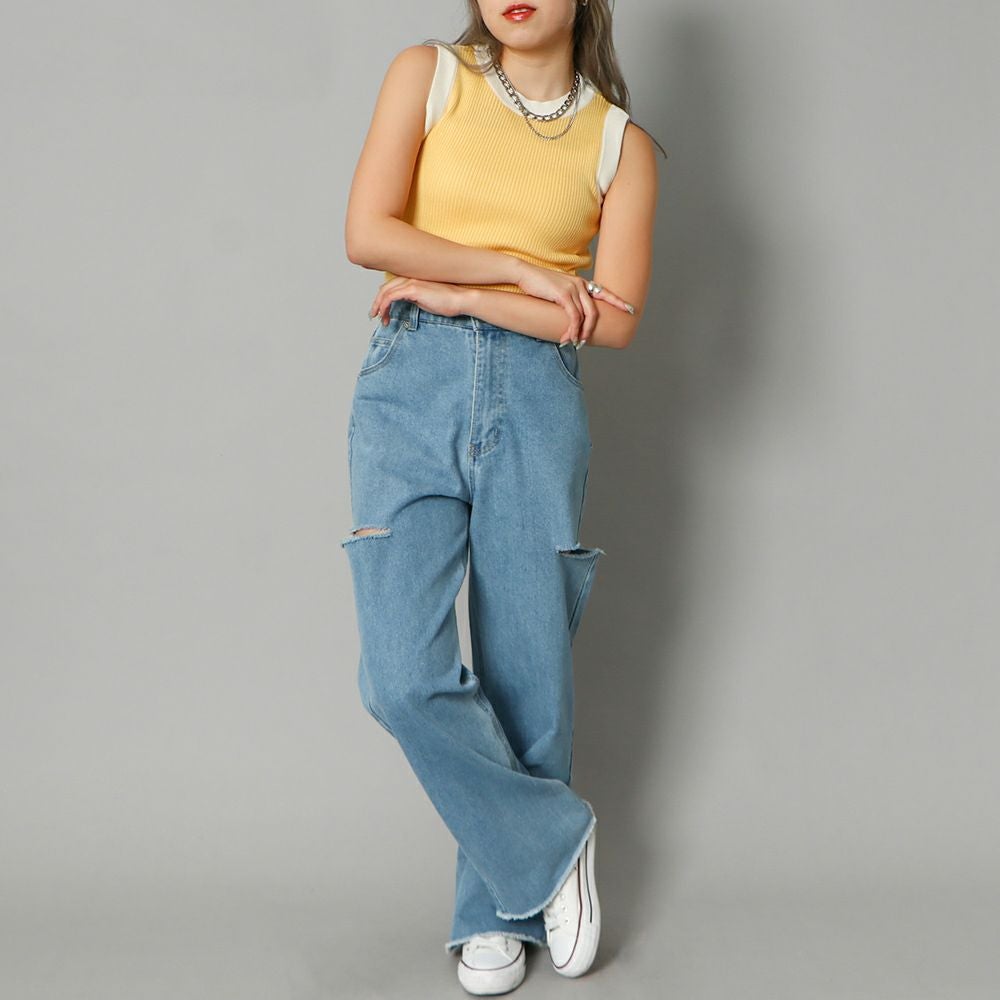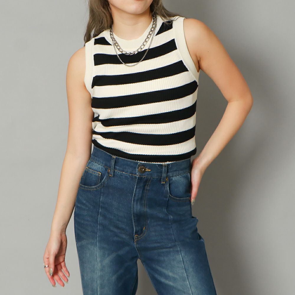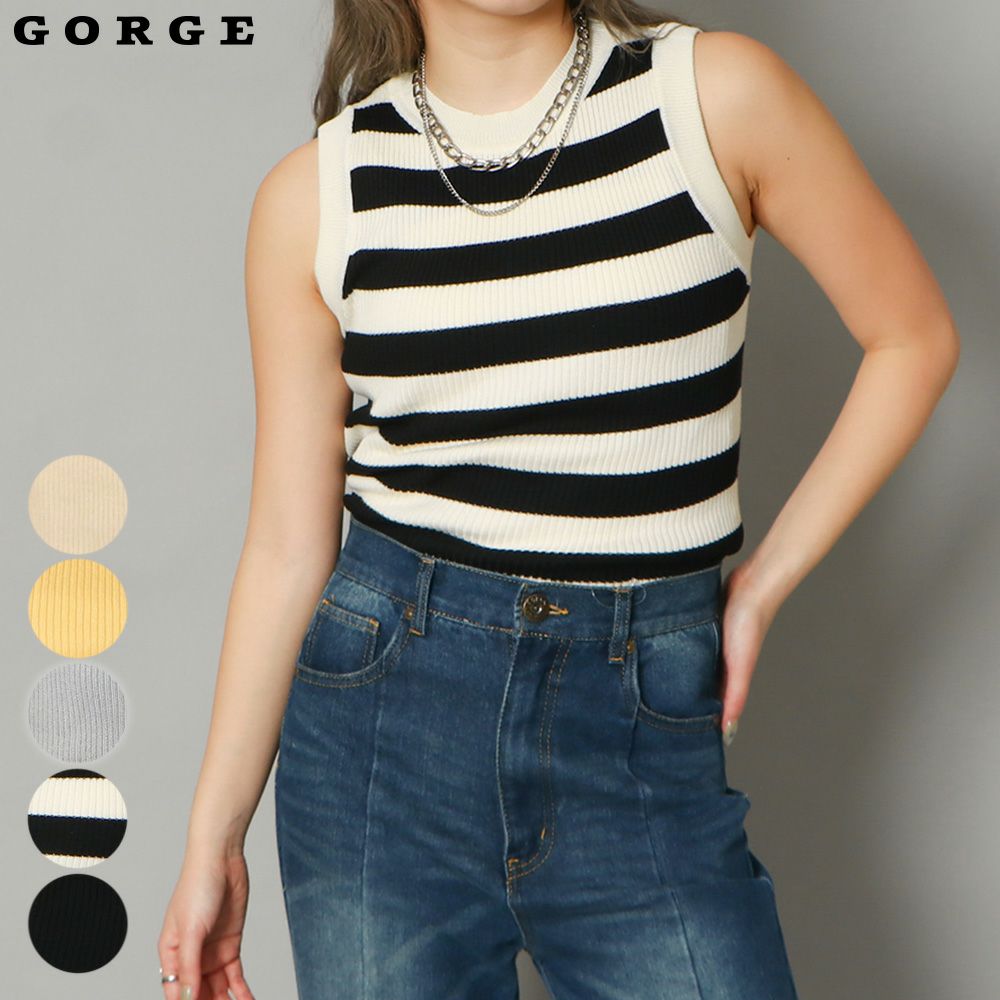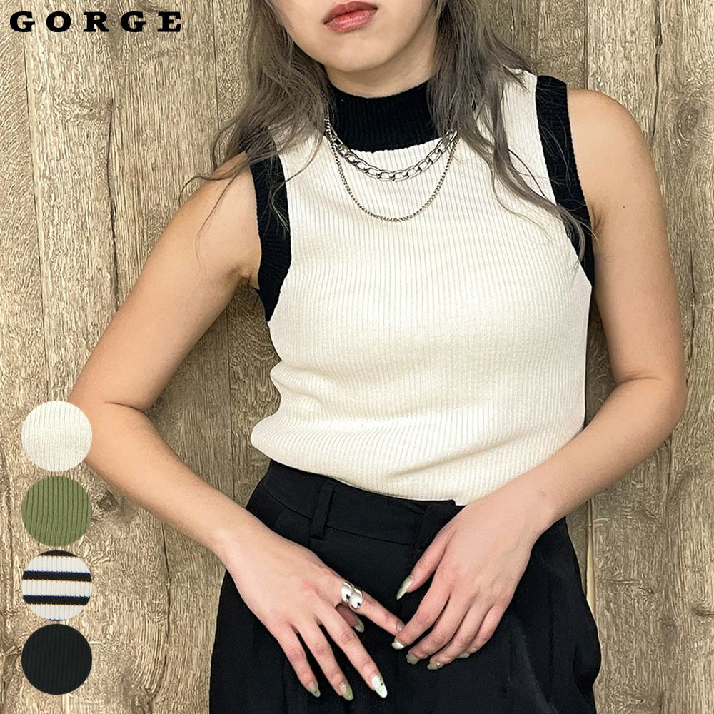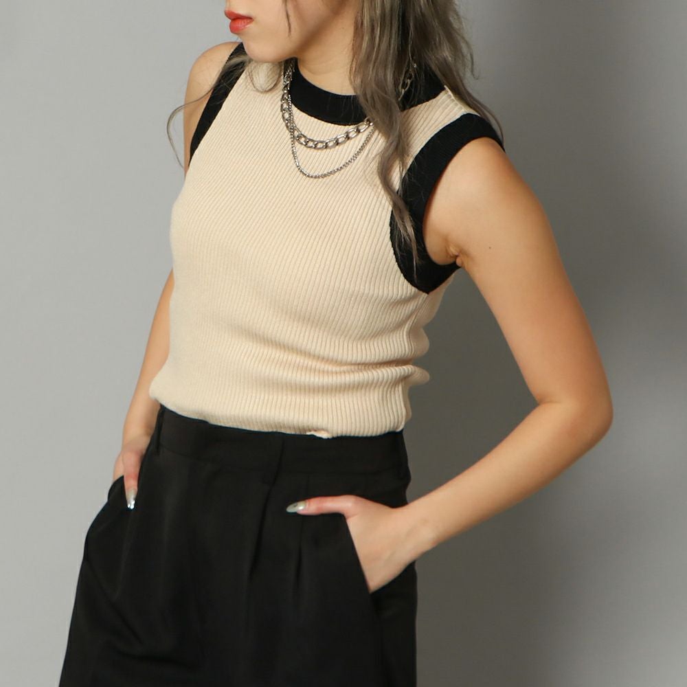 配色リブタンク
