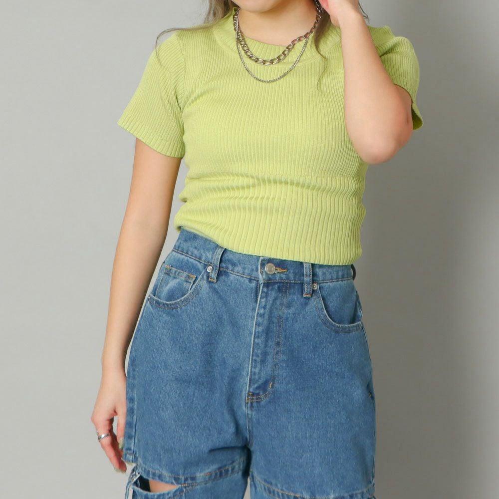 配色リブショートタンク