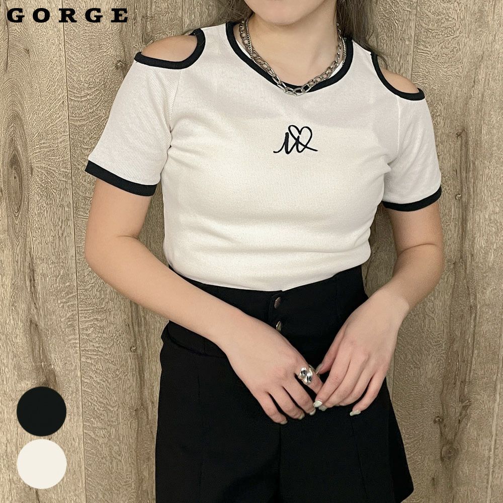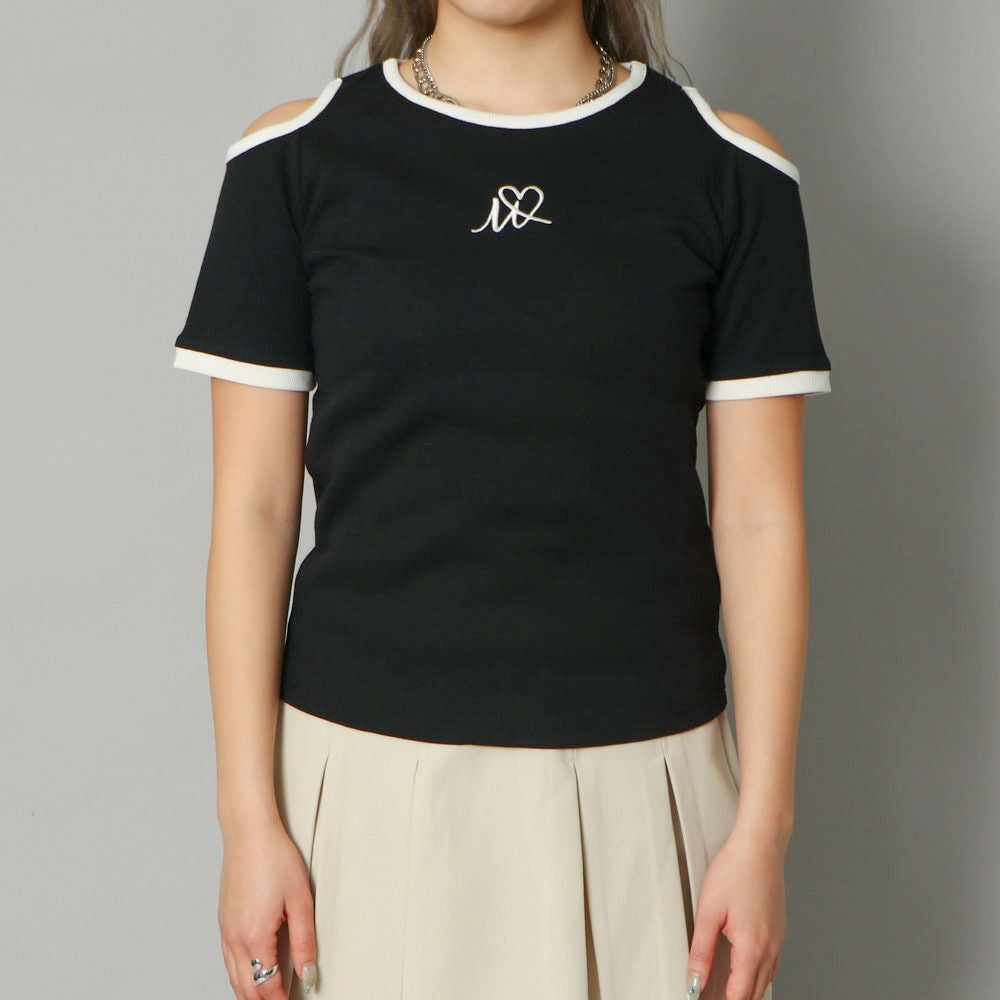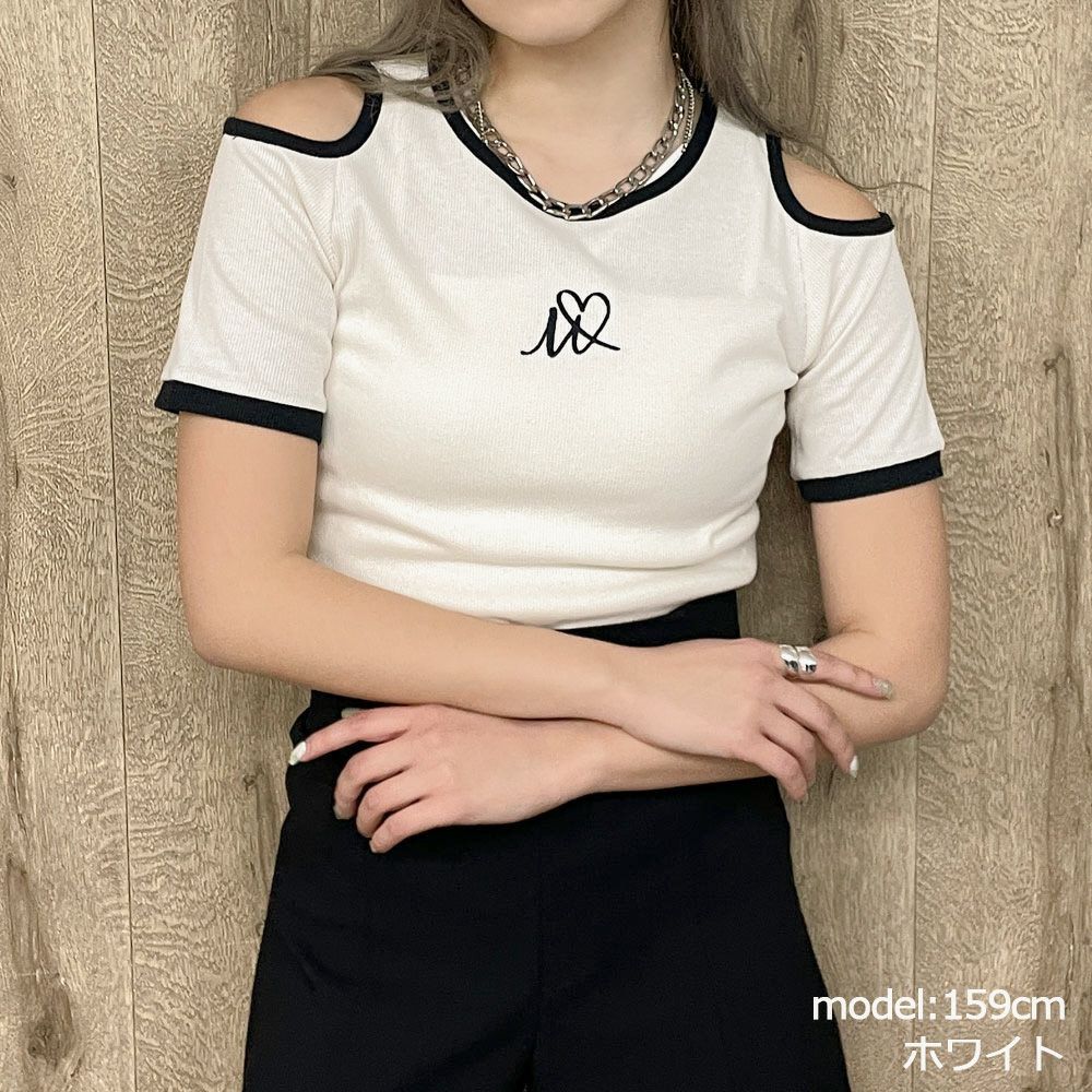肩開きハートワンポイントTops