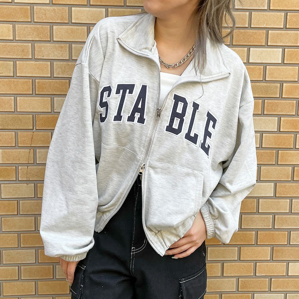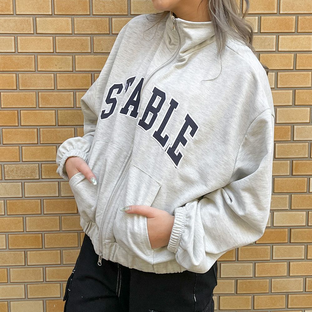 フルZIPスタンドロゴカーディガン