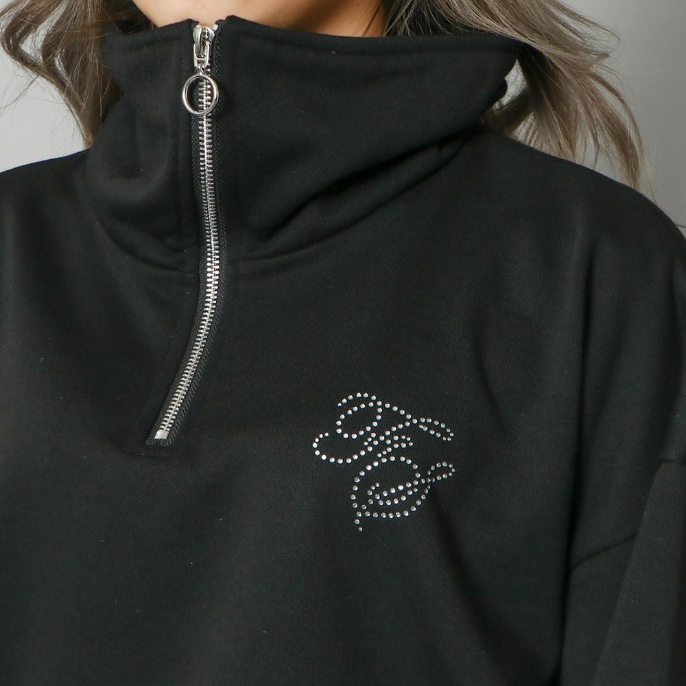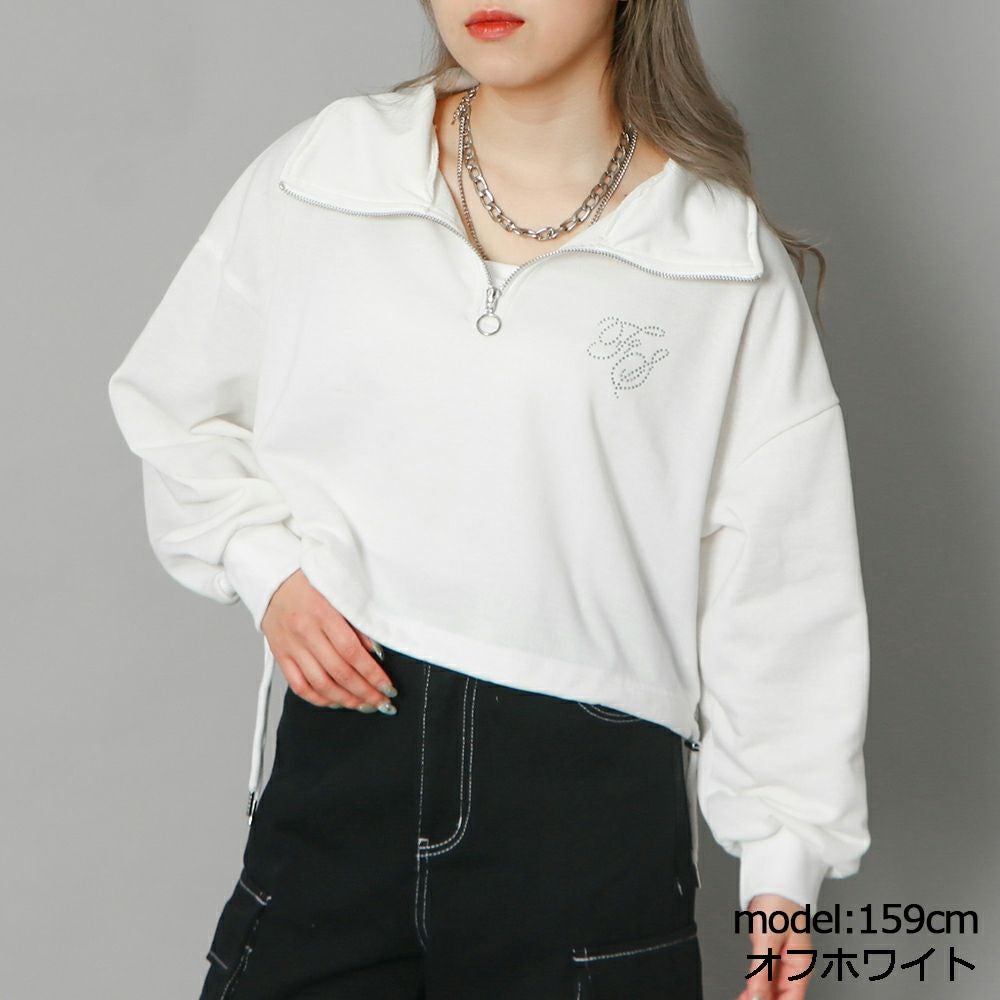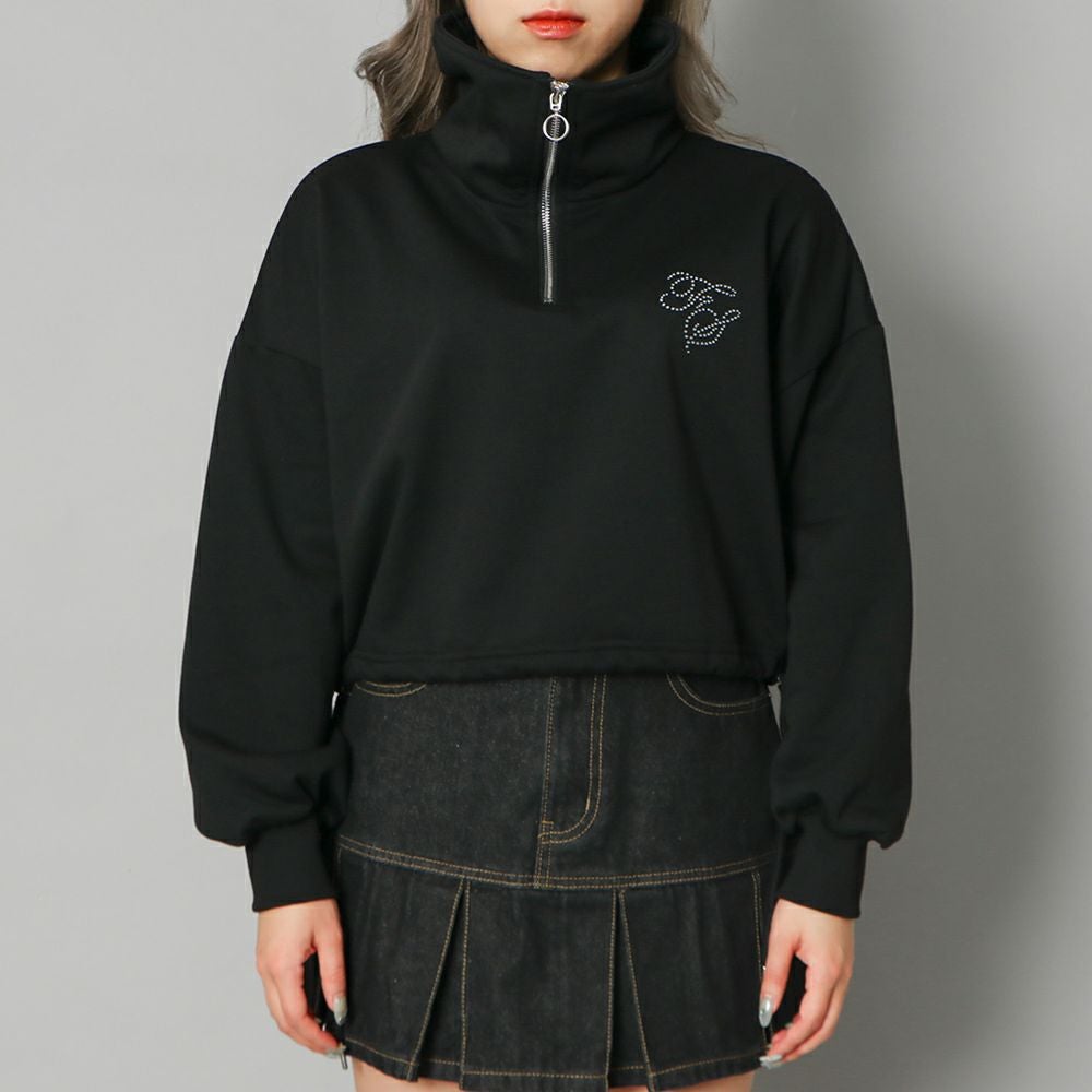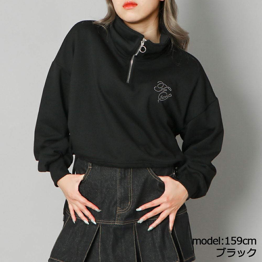 ラインストーンロゴハーフZIPプルオーバー
