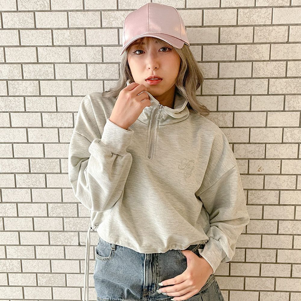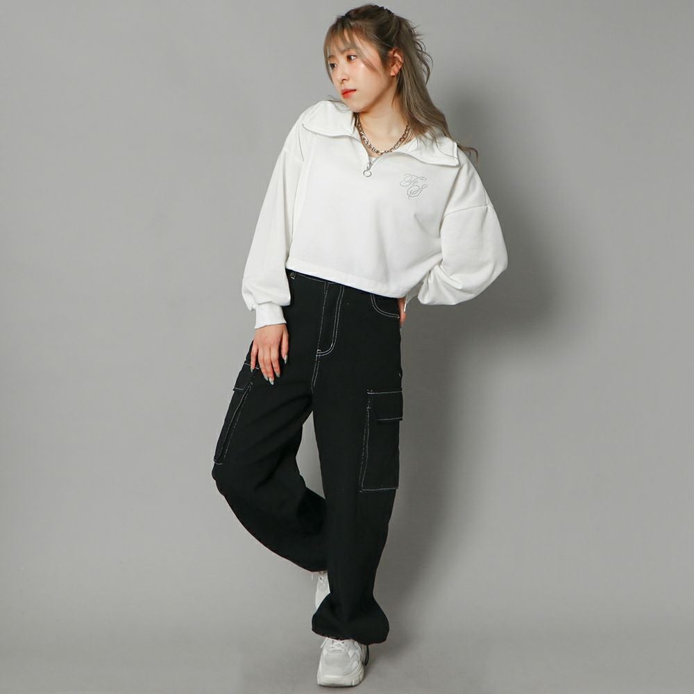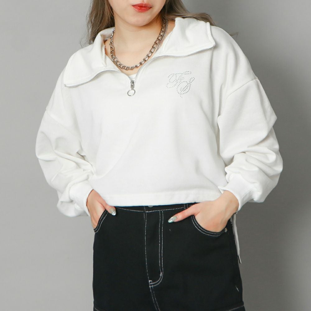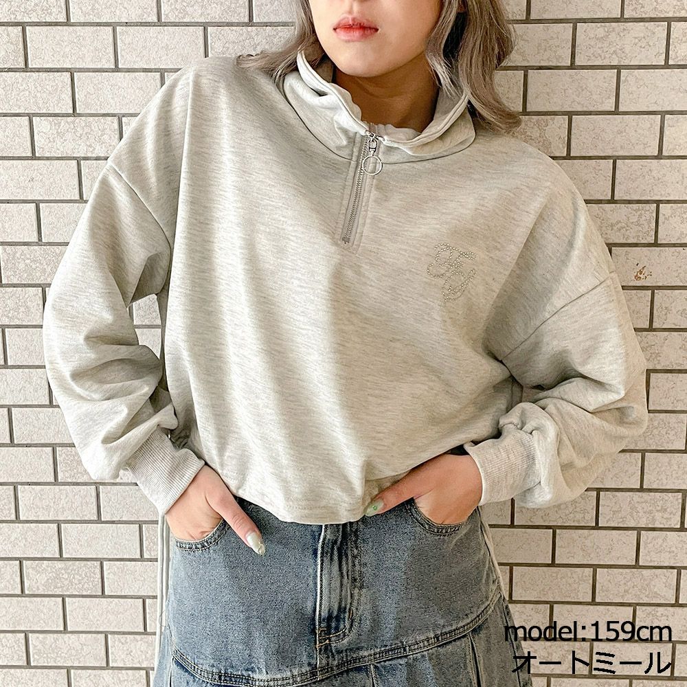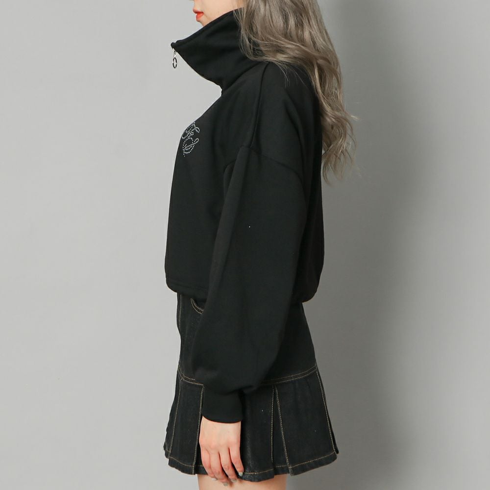 ラインストーンロゴハーフZIPプルオーバー