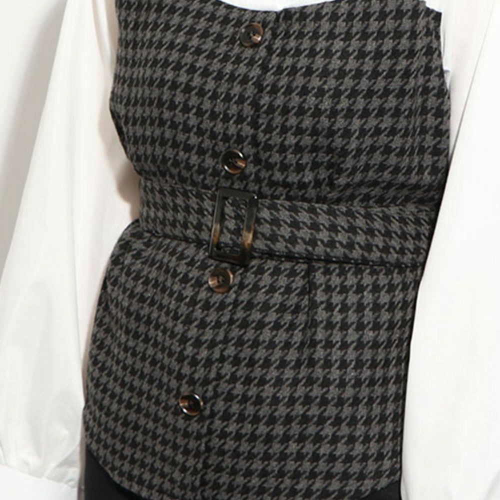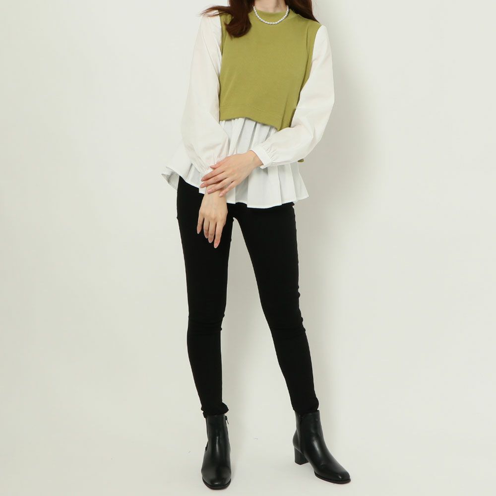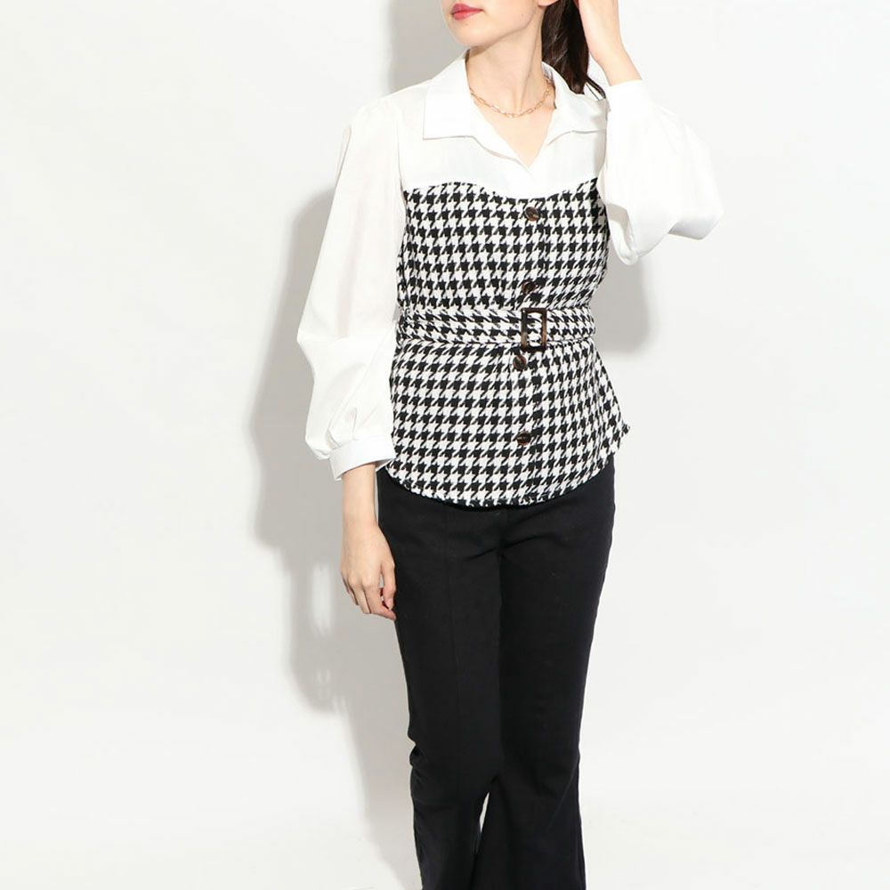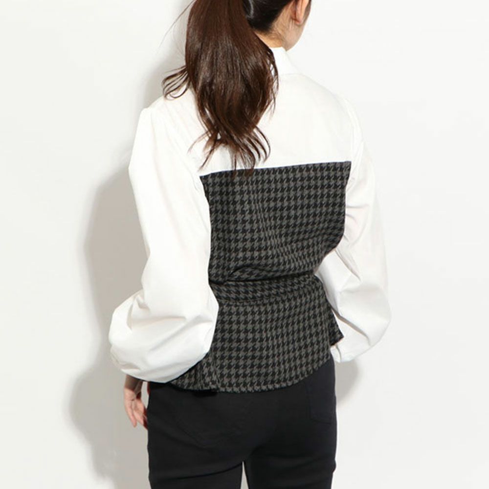 【SPECIALPRICE】肩ギャザー柄ドッキングシャツ