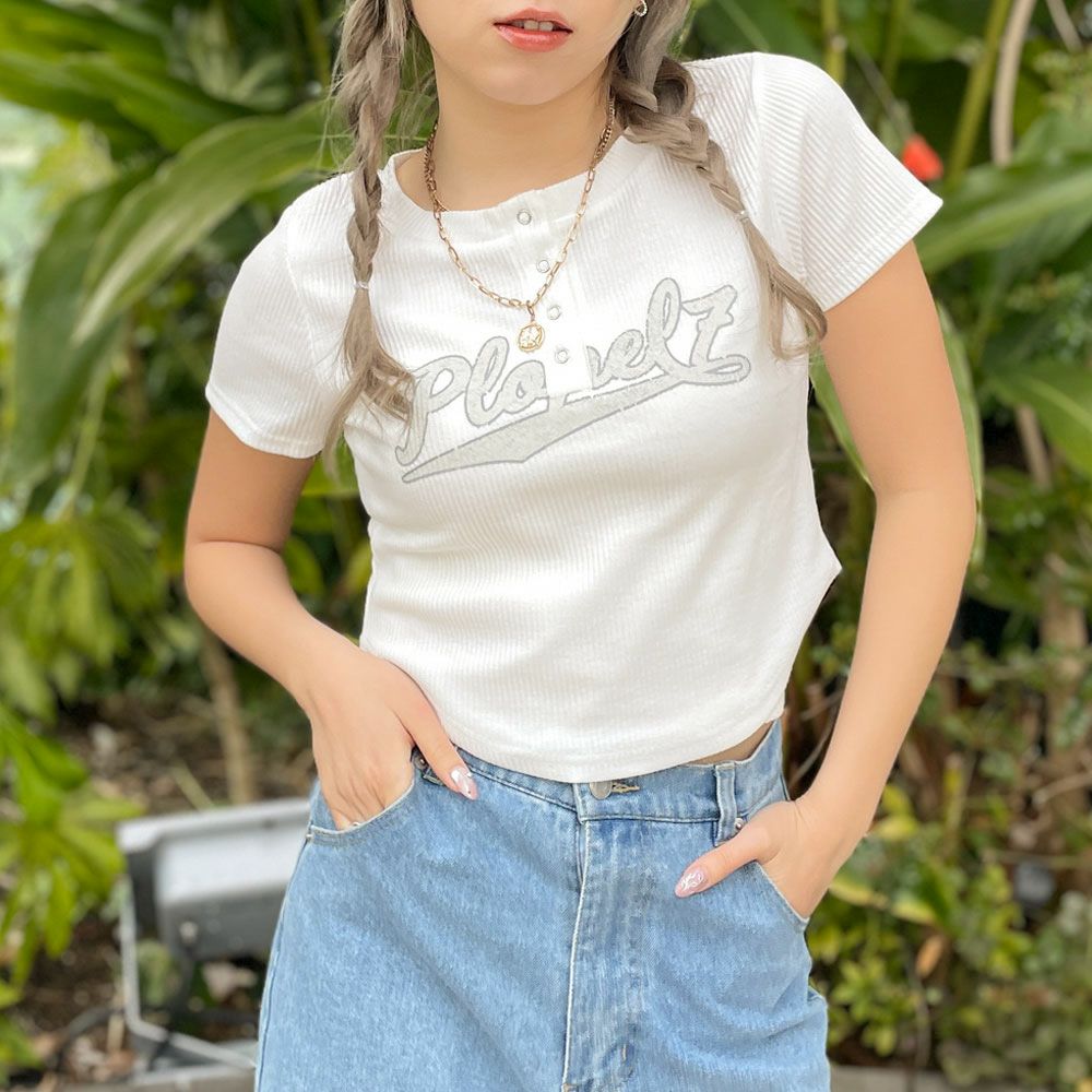 テレコリブボタンロゴTシャツ
