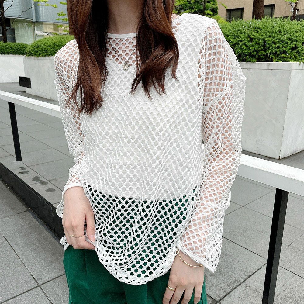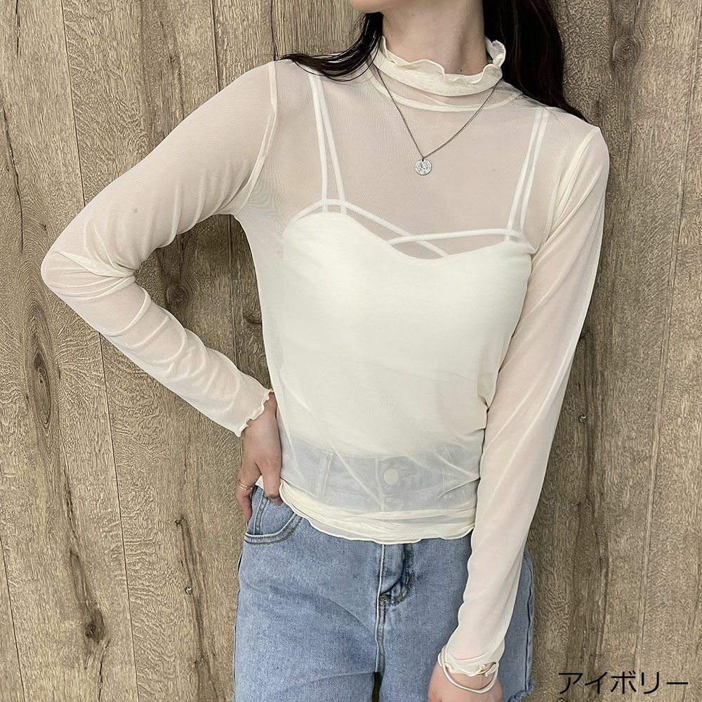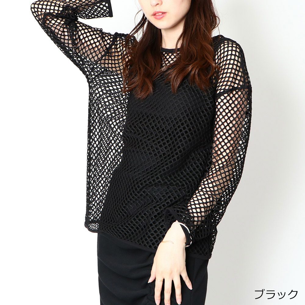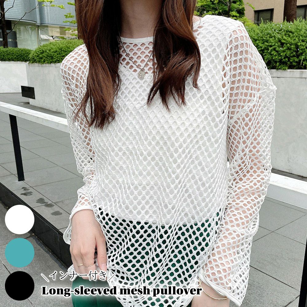 インナー付き長袖メッシュプルオーバー