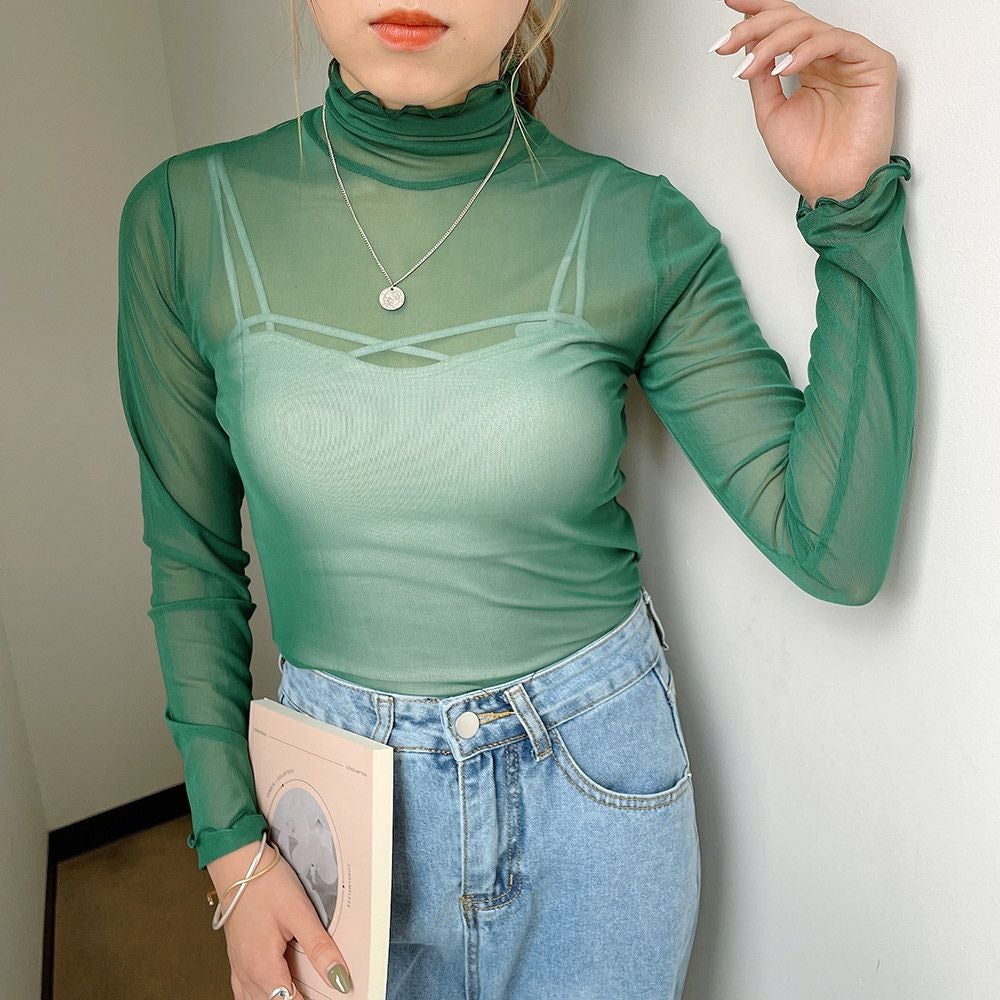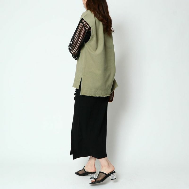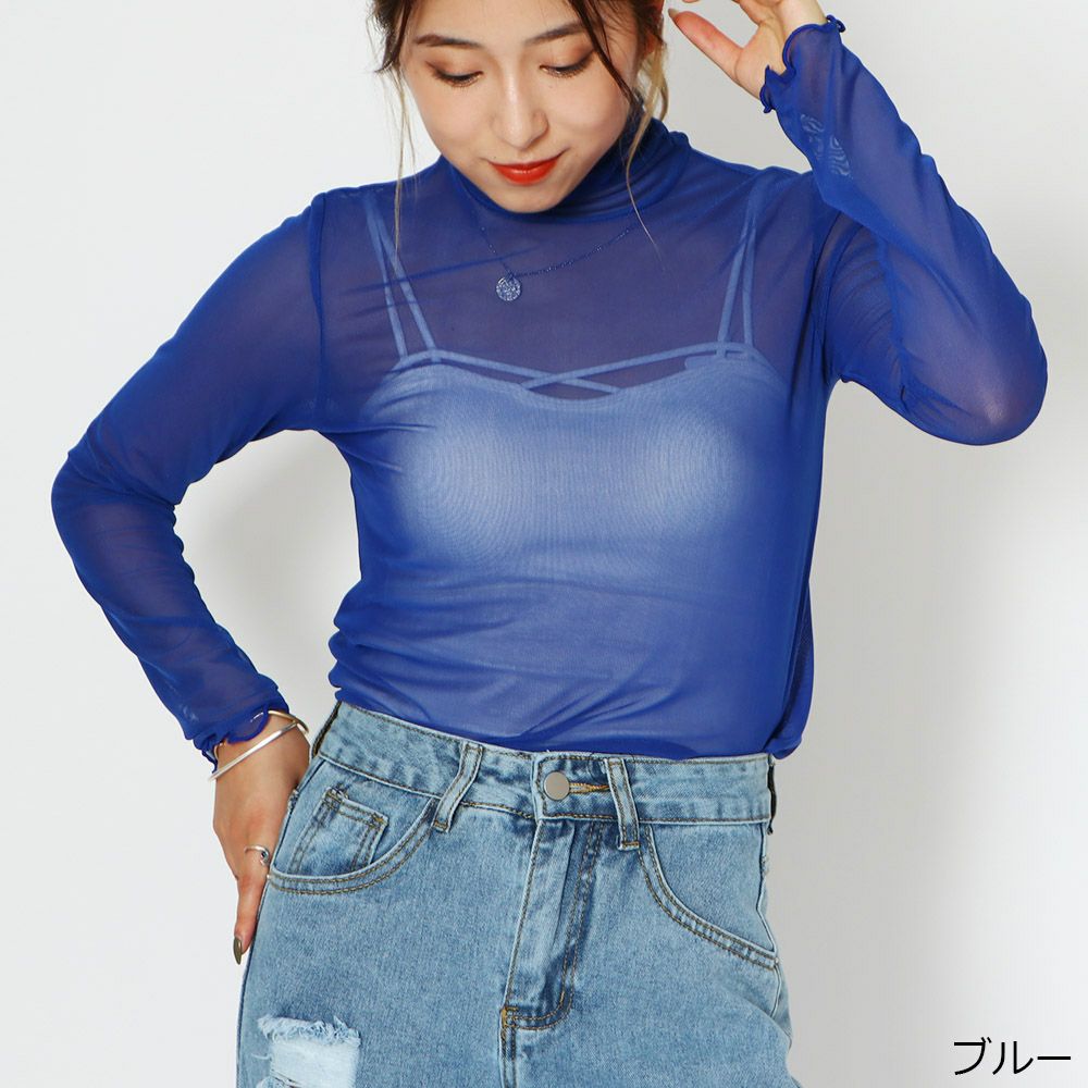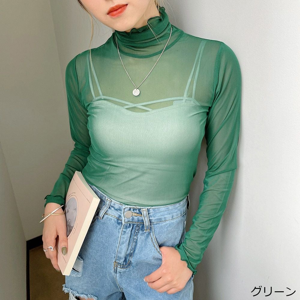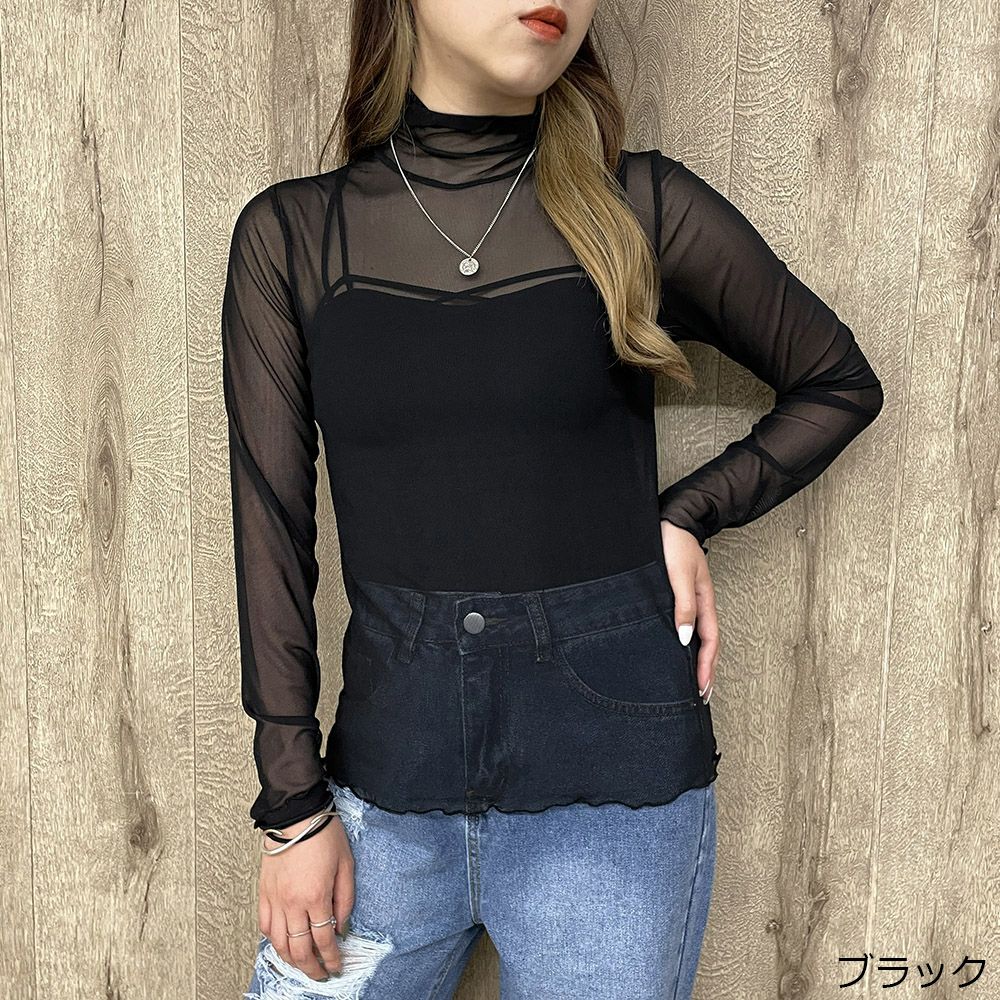 インナー付き長袖メッシュプルオーバー