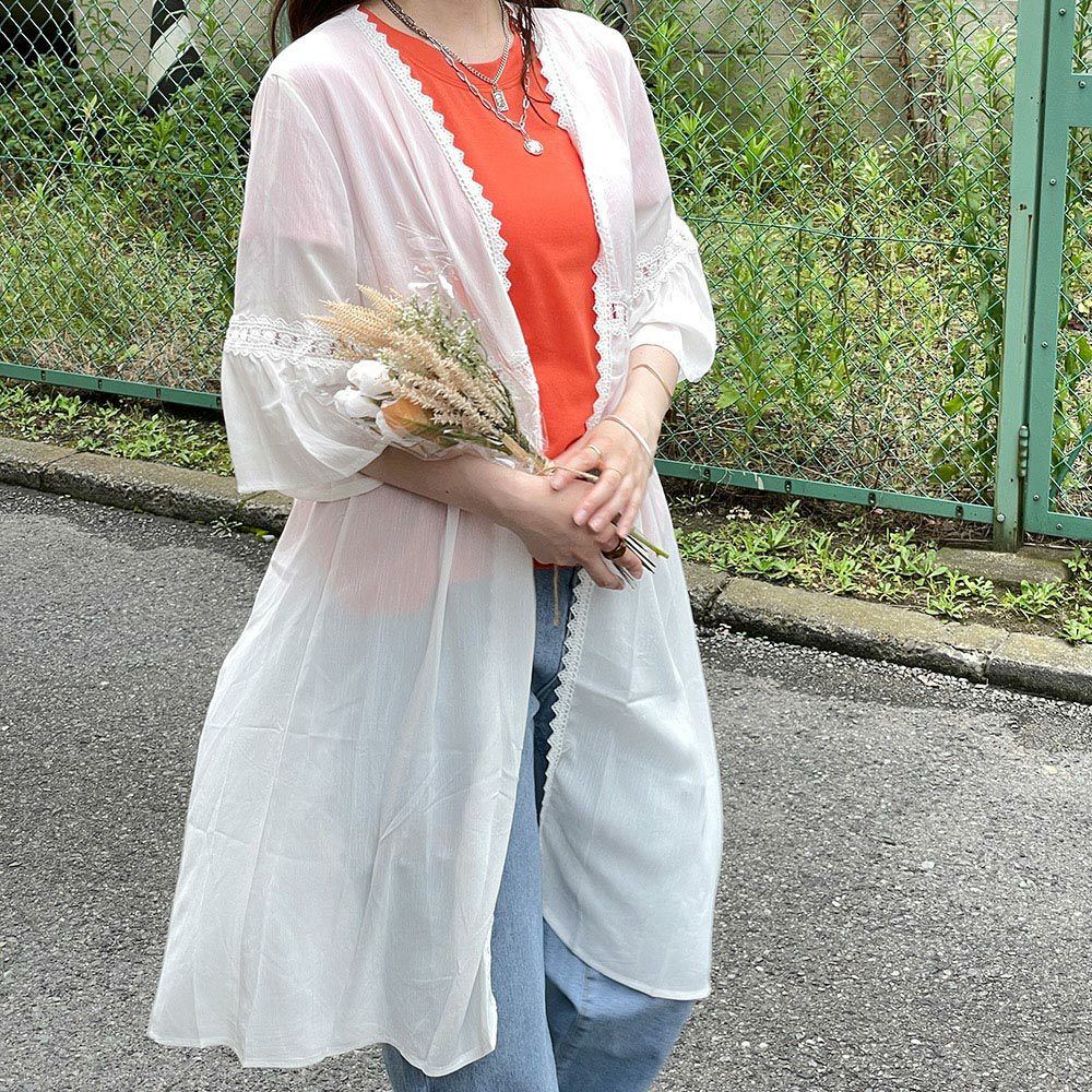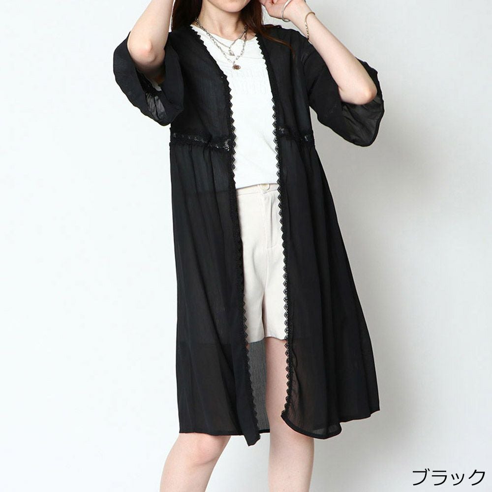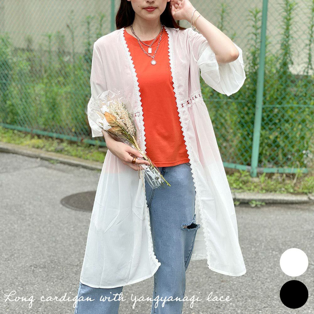 楊柳レース付きロングカーディガン
