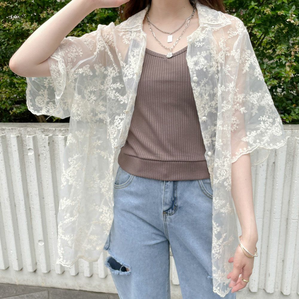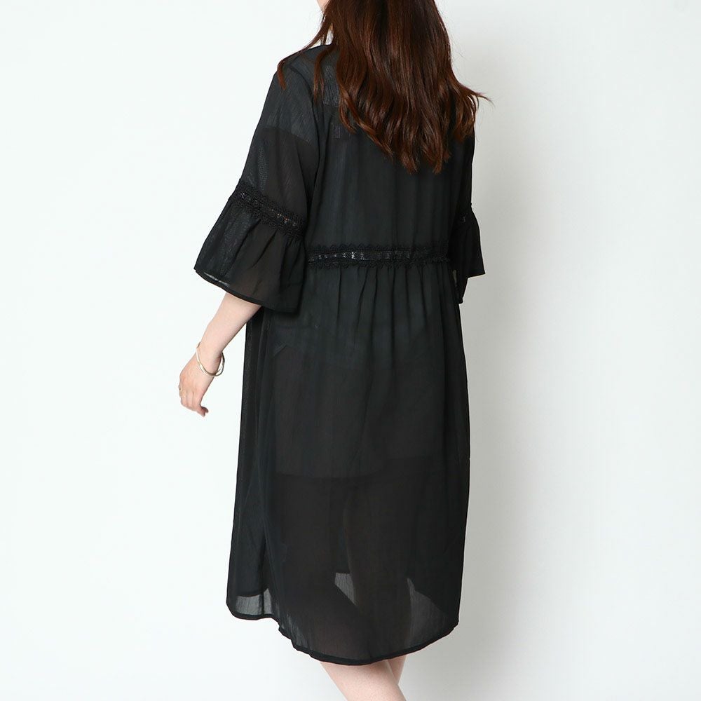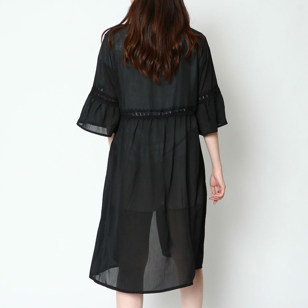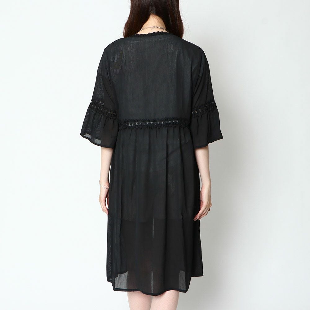 楊柳レース付きロングカーディガン