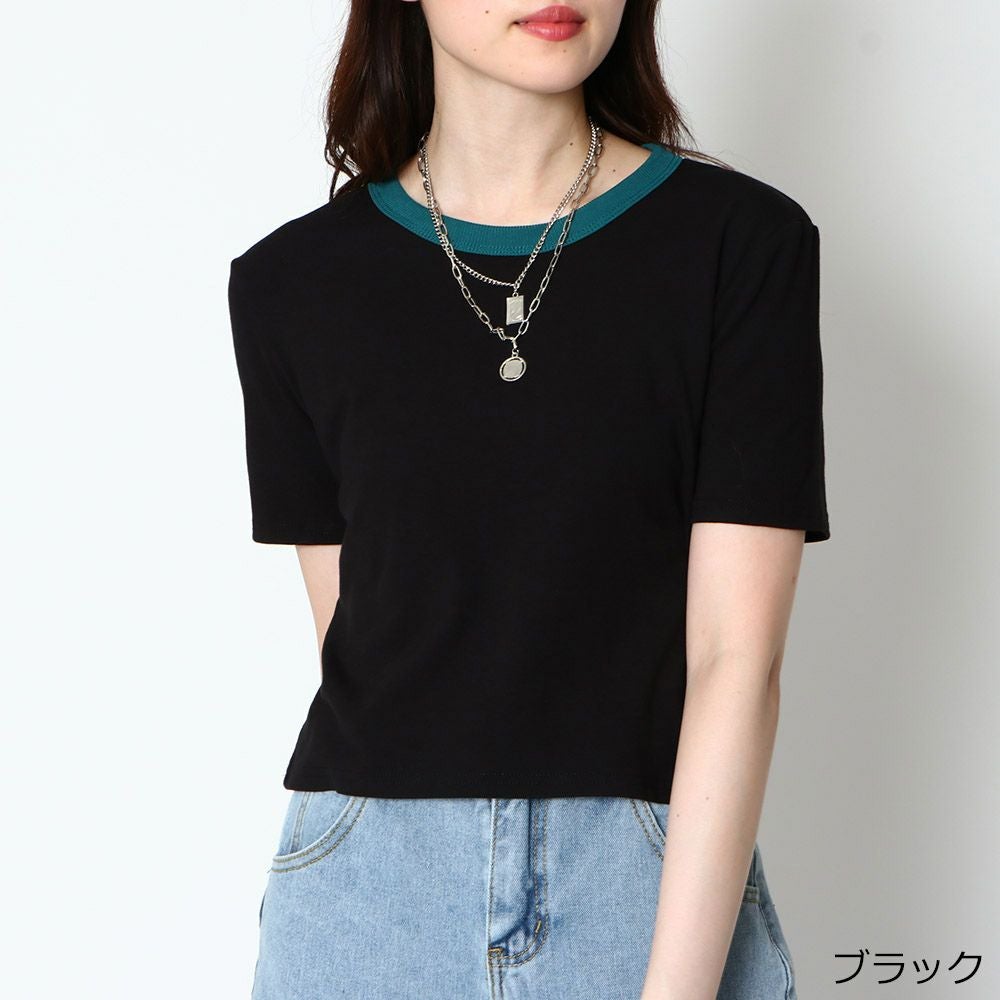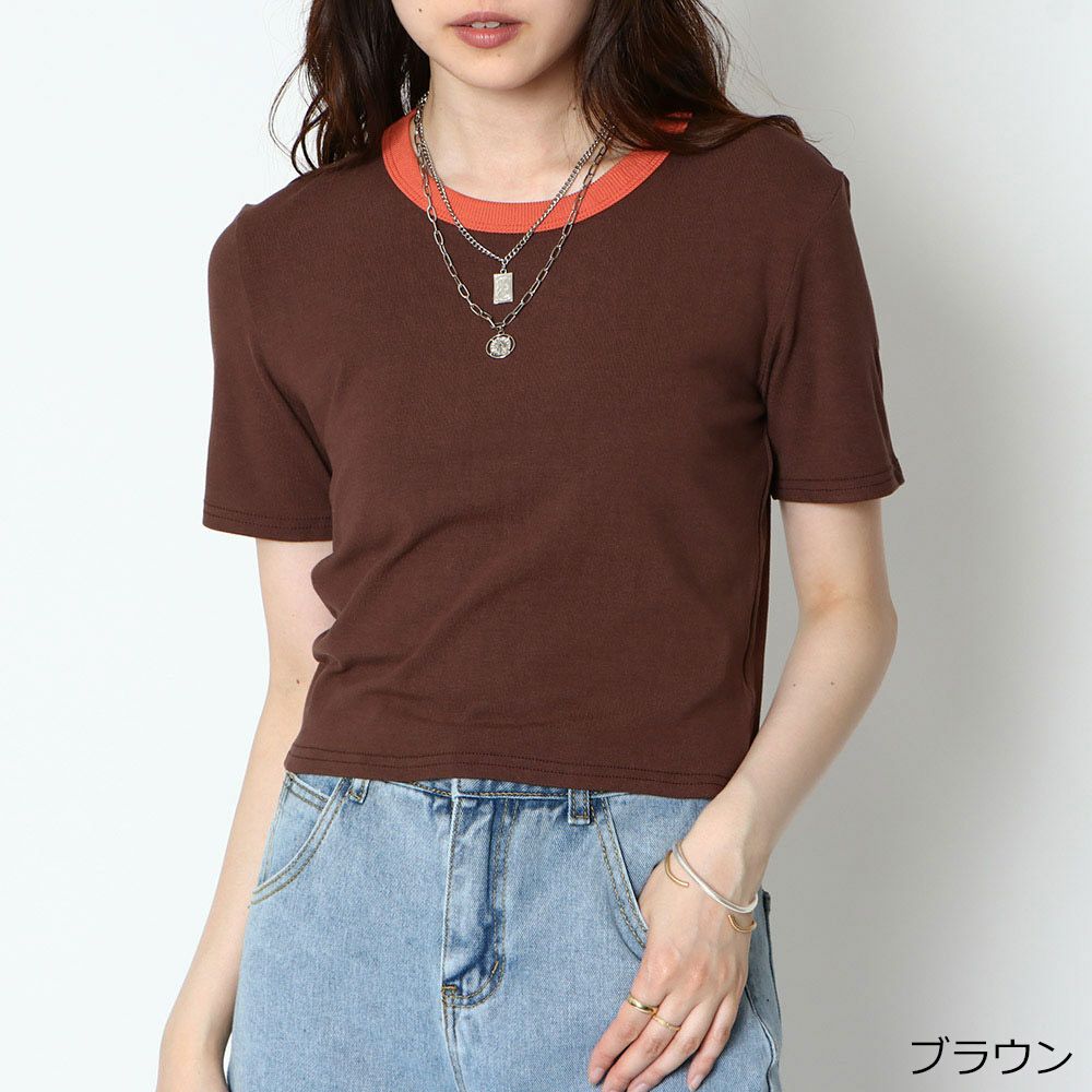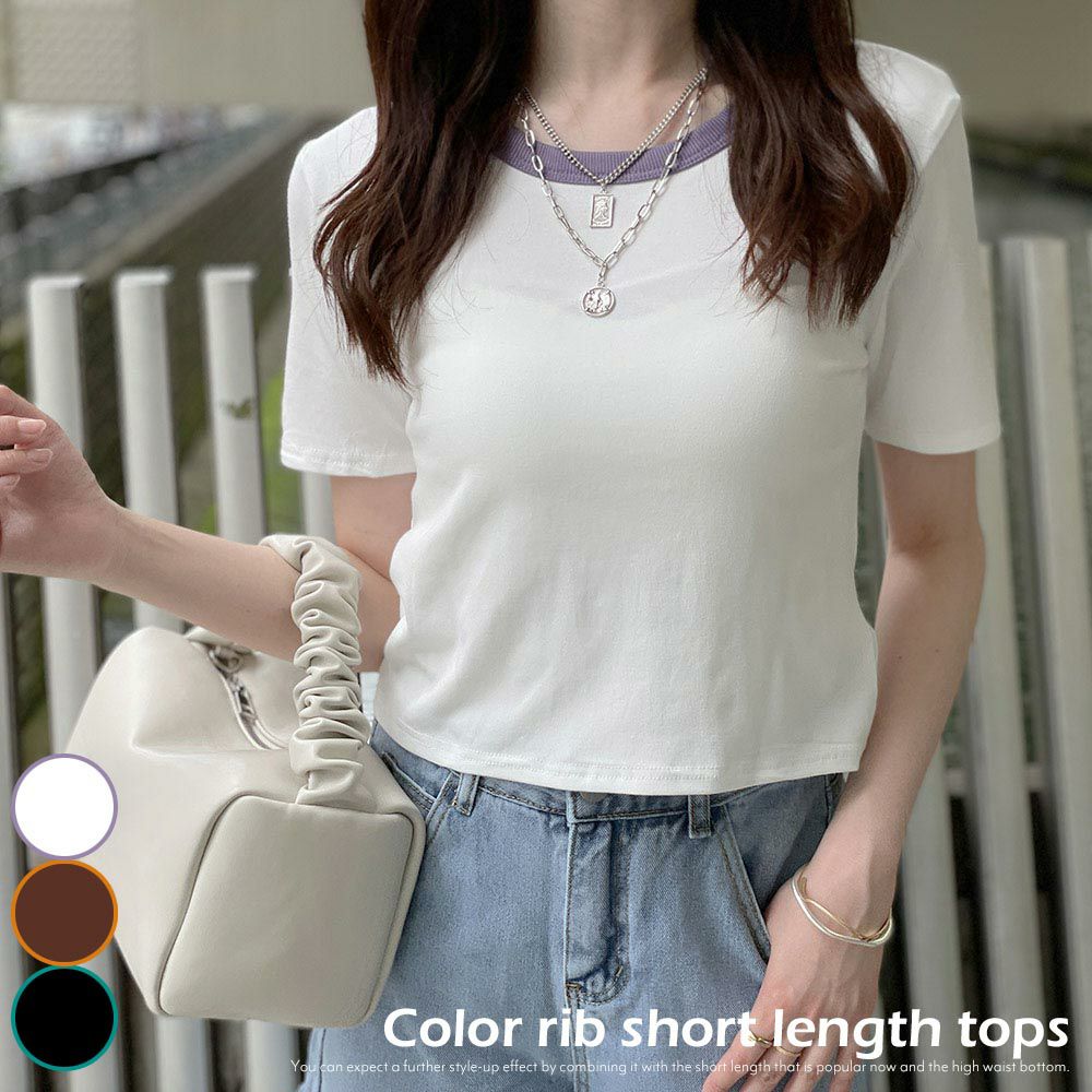 カラーリブ短丈トップス