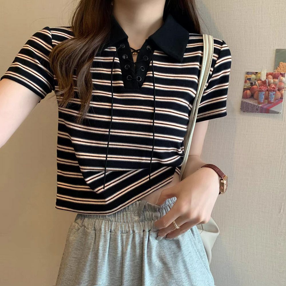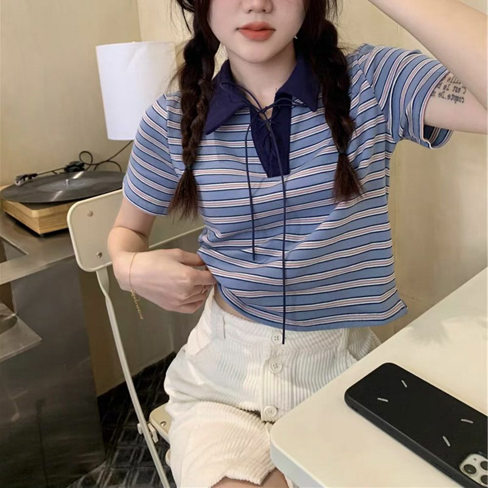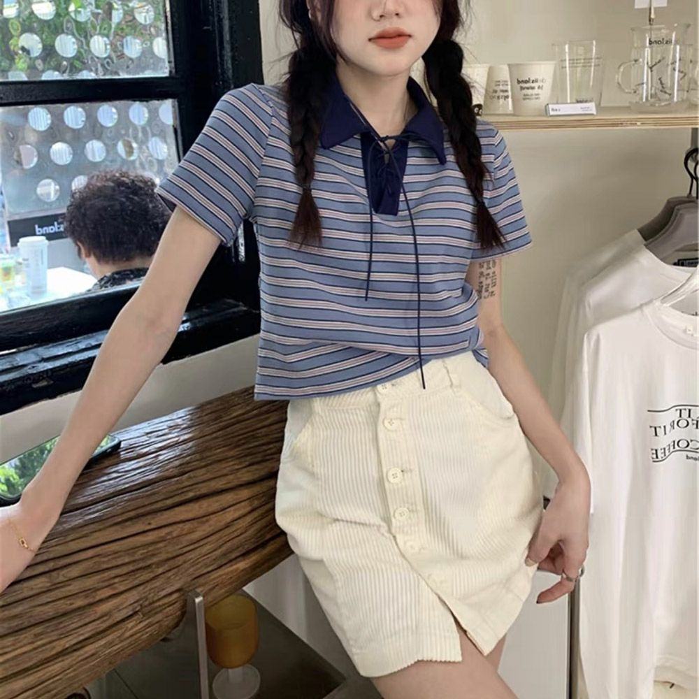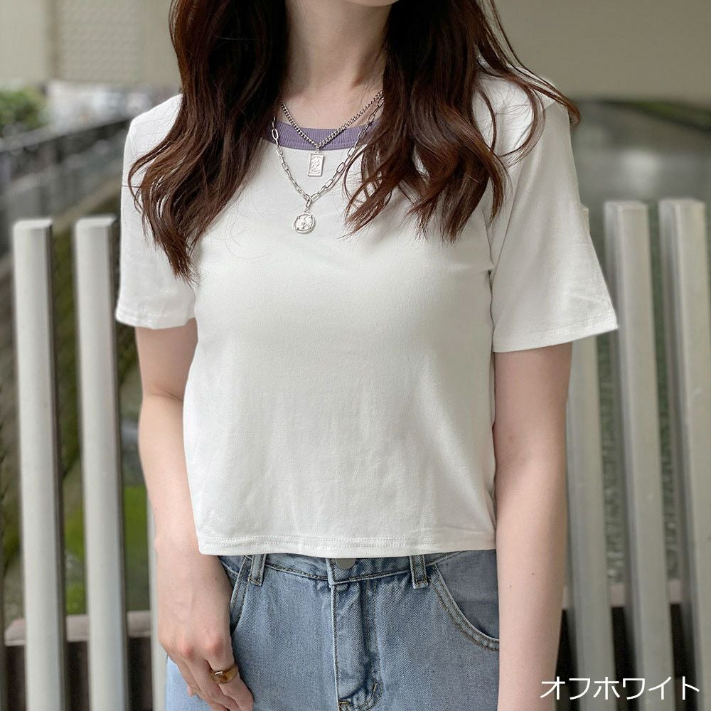 カラーリブ短丈トップス