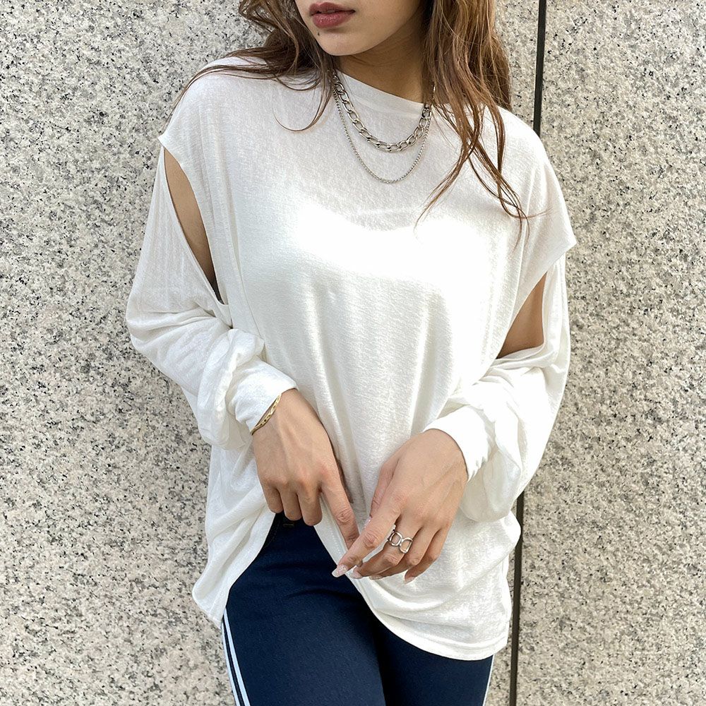 スラブ肩開きマルチウェイトップス