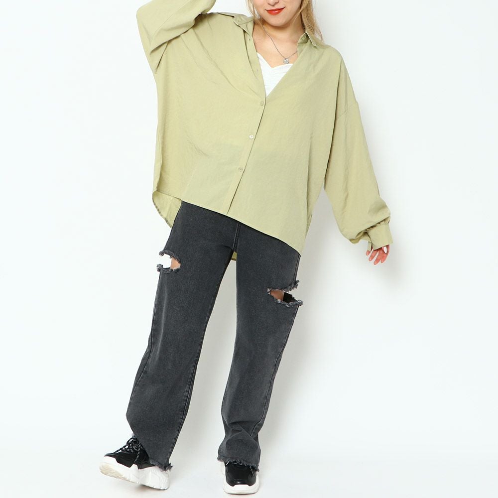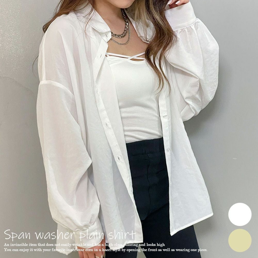 スパンワッシャー無地シャツ