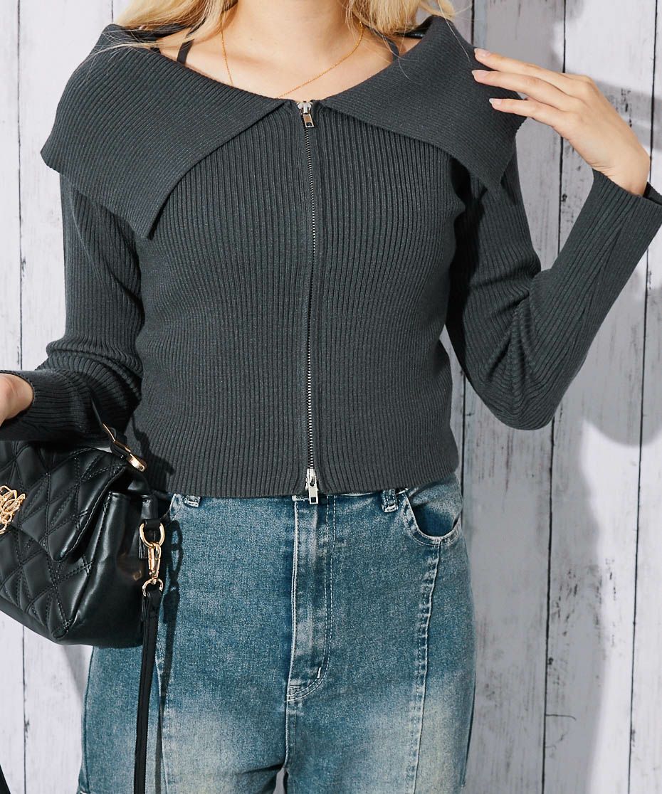 他の画像を見る 《デカ衿×ホルターネック》レディース リブニット ジップカーデ ショート丈 秋冬春 NEW 2BUY10%OFF 定価 ¥ 4,939 のところ SALE価格 ¥ 2,469 税込 在庫切れ カートに入れる お気に入りに登録する