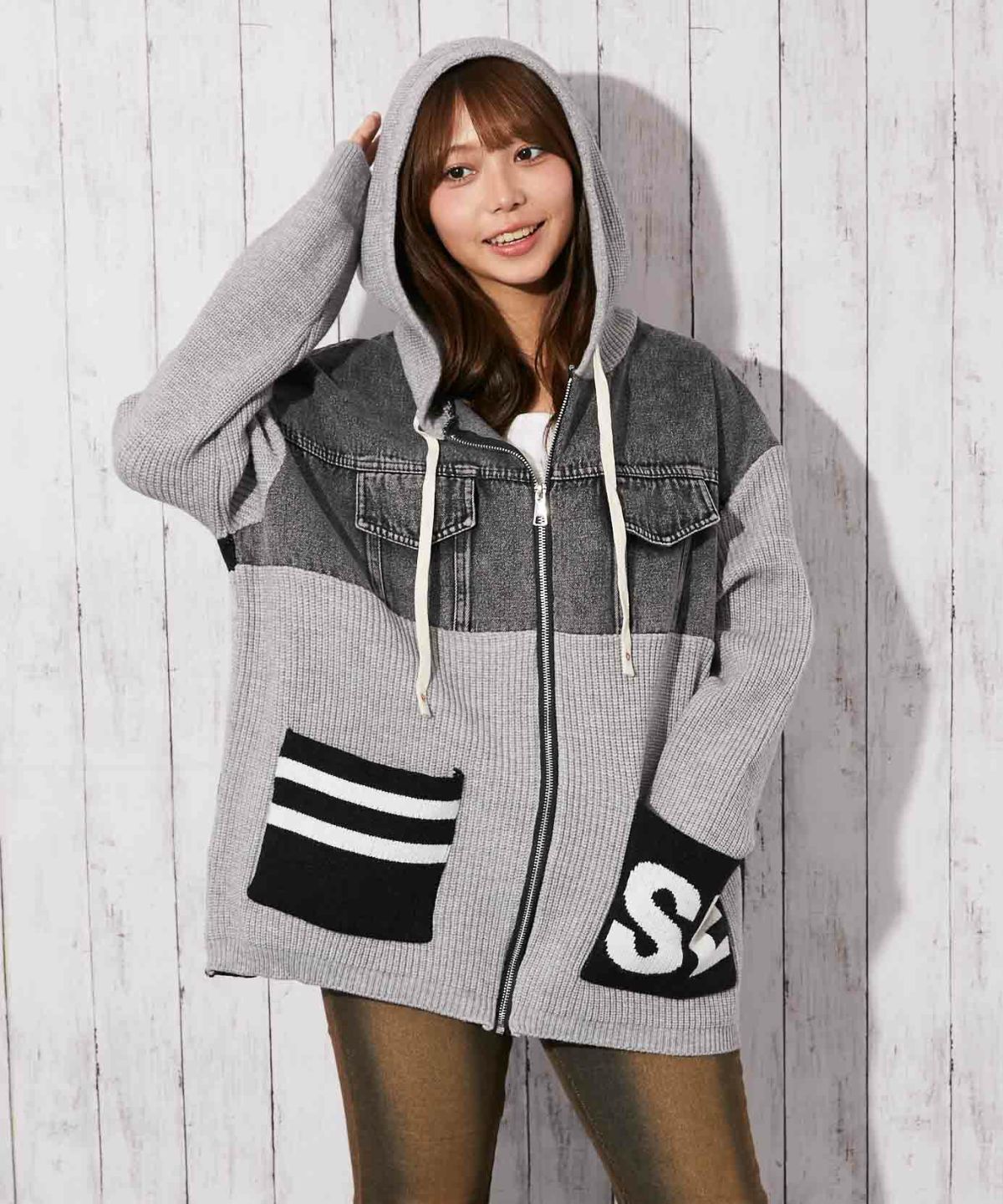 他の画像を見る 《デニム切替×ロゴポケット》レディース ニットドッキング ジップパーカー ミドル丈 秋冬 NEW 2BUY10%OFF 定価 ¥ 8,789 のところ SALE価格 ¥ 4,394 税込 在庫切れ カートに入れる お気に入りに登録する