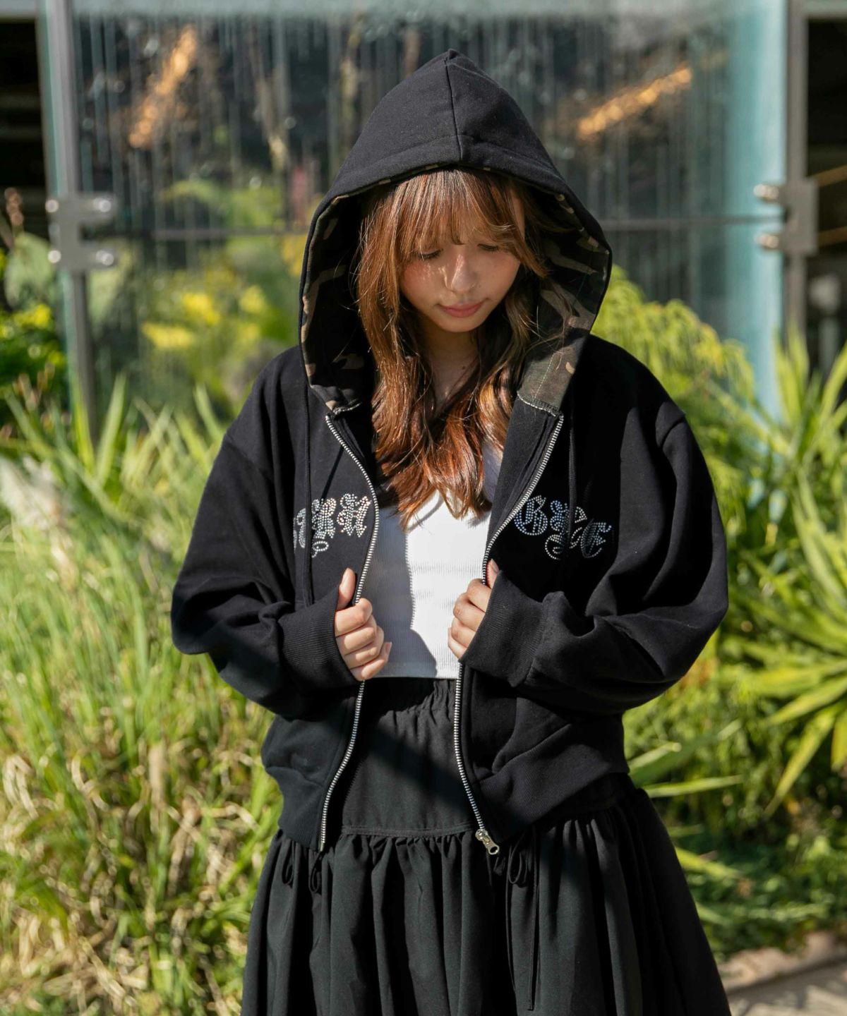 他の画像を見る 《裏地柄フード×キラキラロゴ》ショート丈ジップパーカー NEW 2BUY10%OFF 定価 ¥ 6,589 のところ SALE価格 ¥ 3,294 税込 在庫切れ カートに入れる お気に入りに登録する