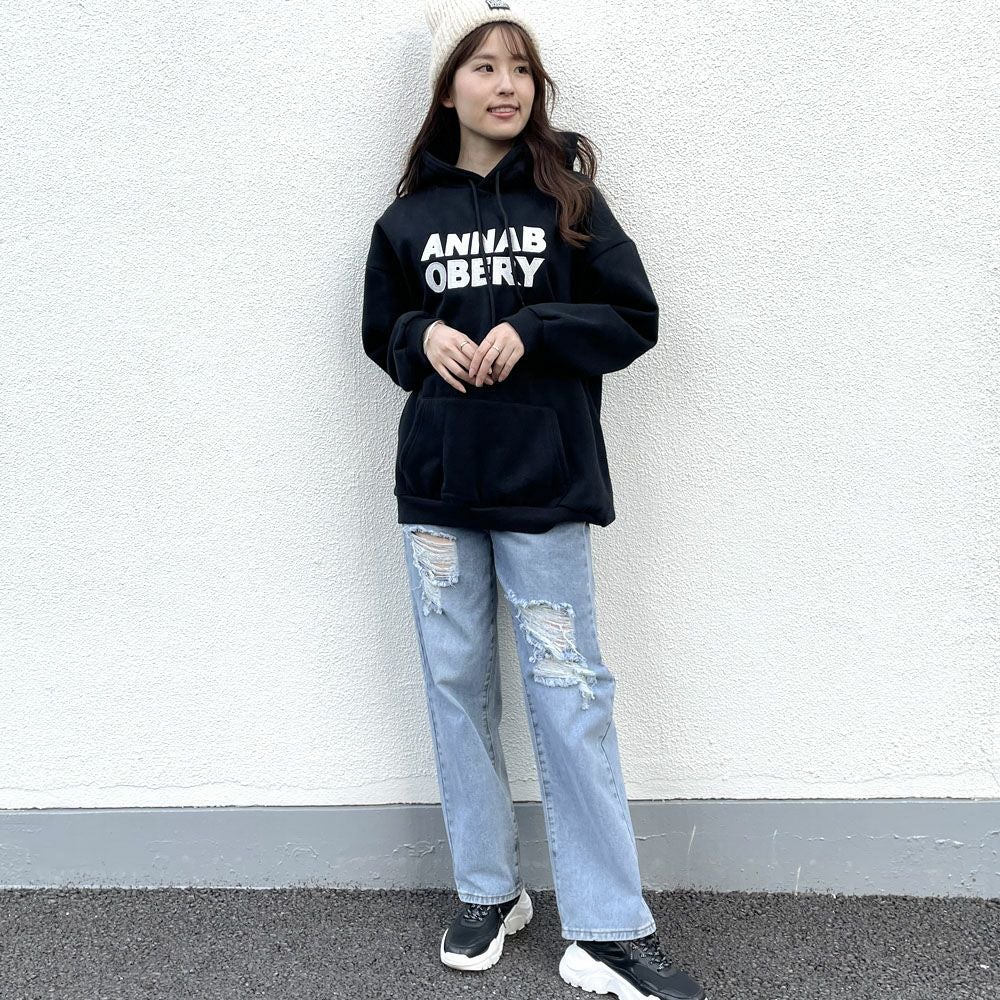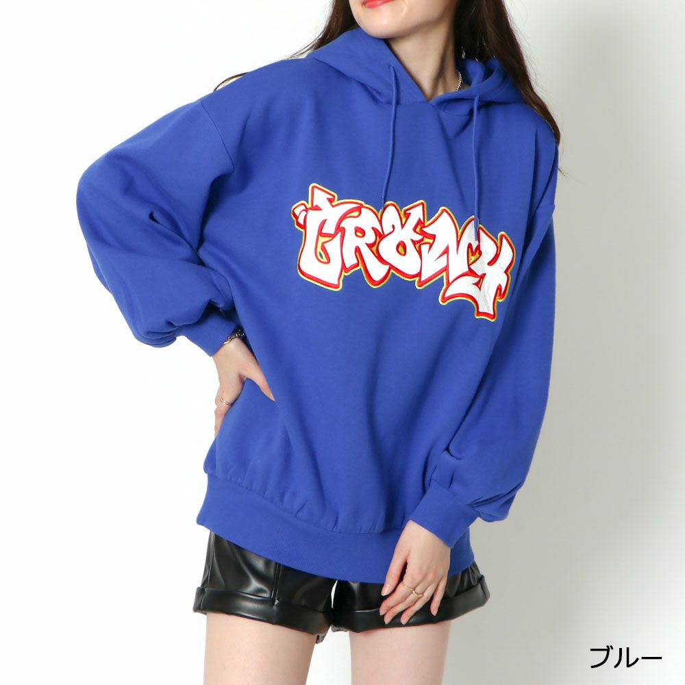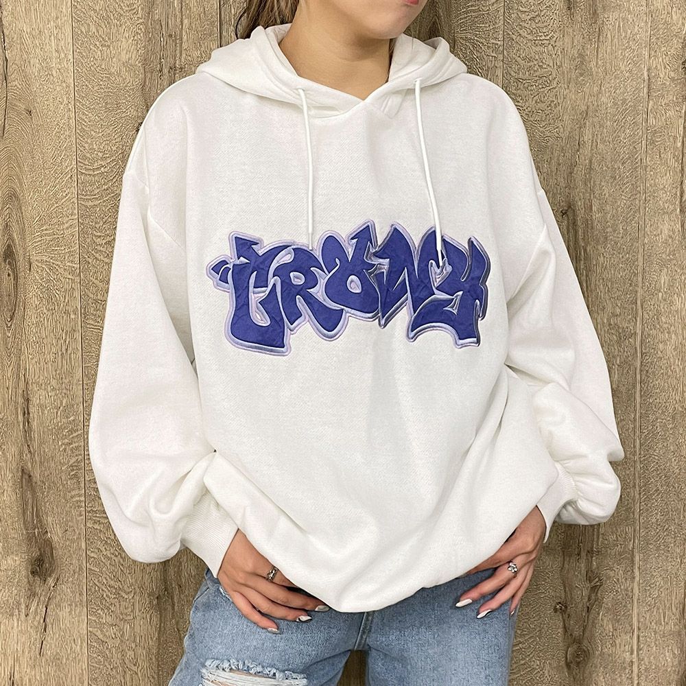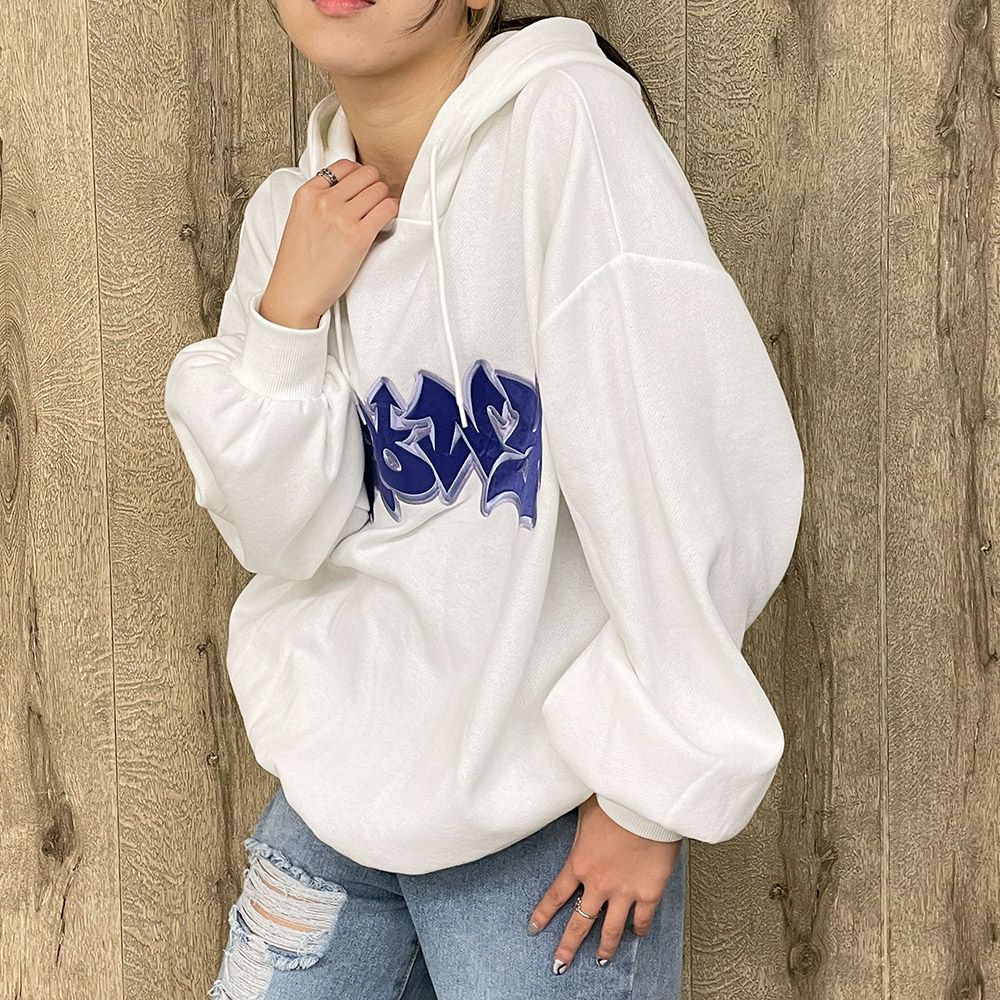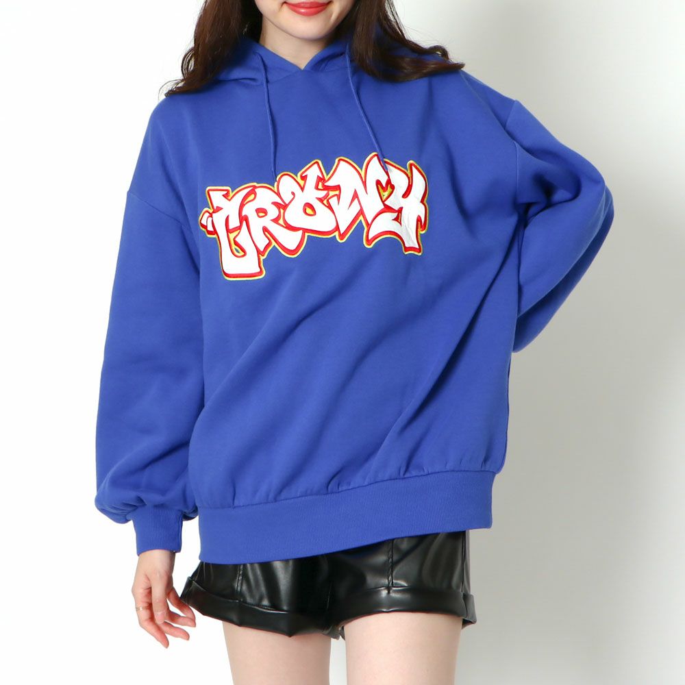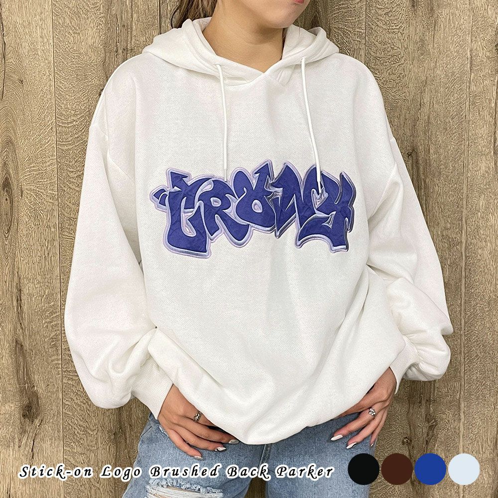 貼付けロゴ裏起毛パーカー