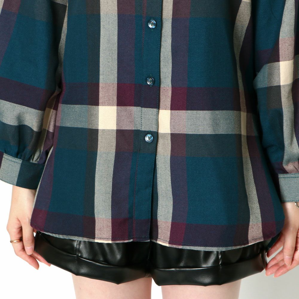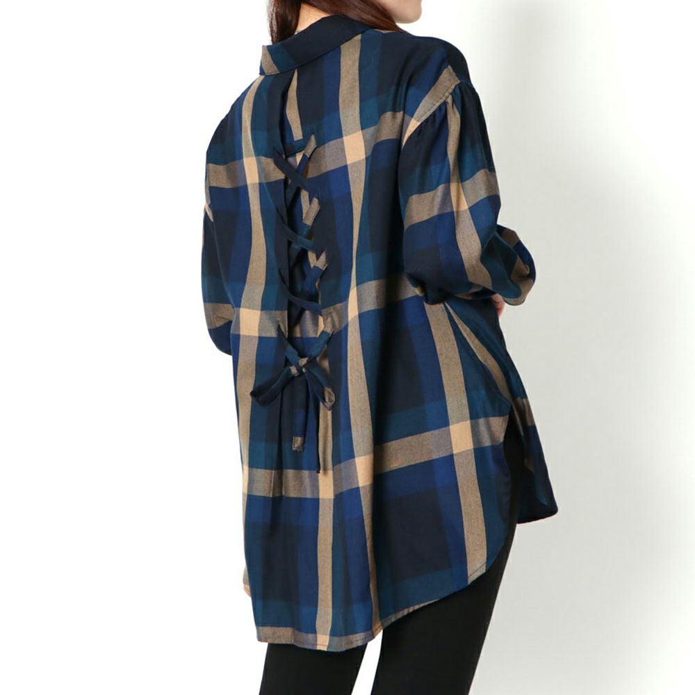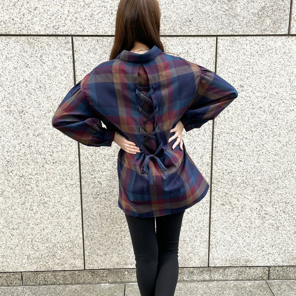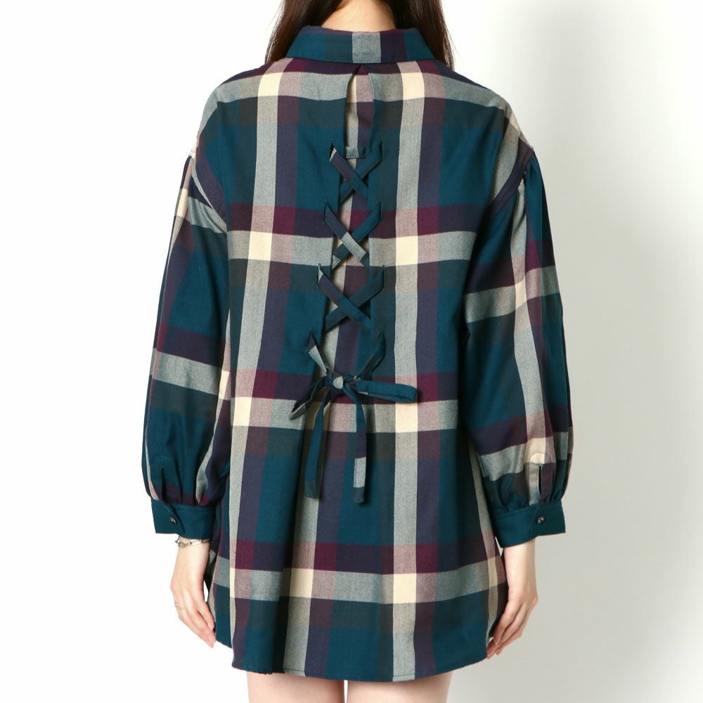 デカチェックバックレースシャツ