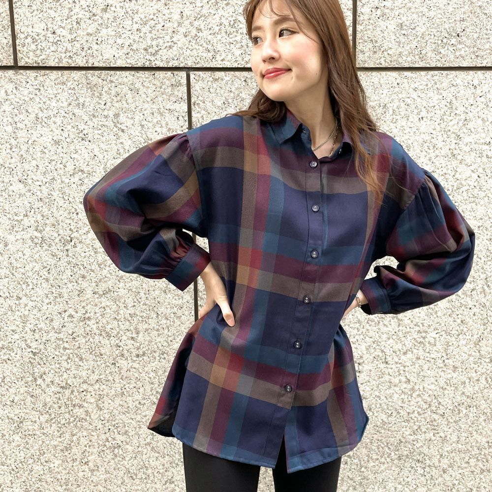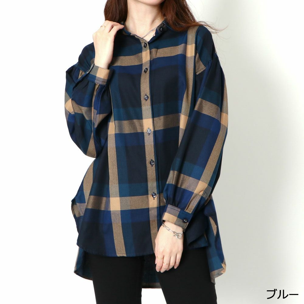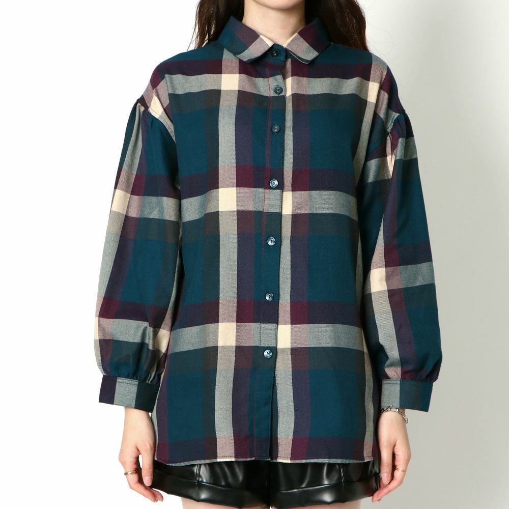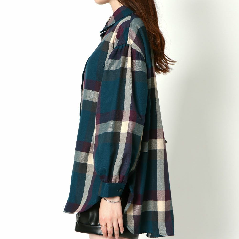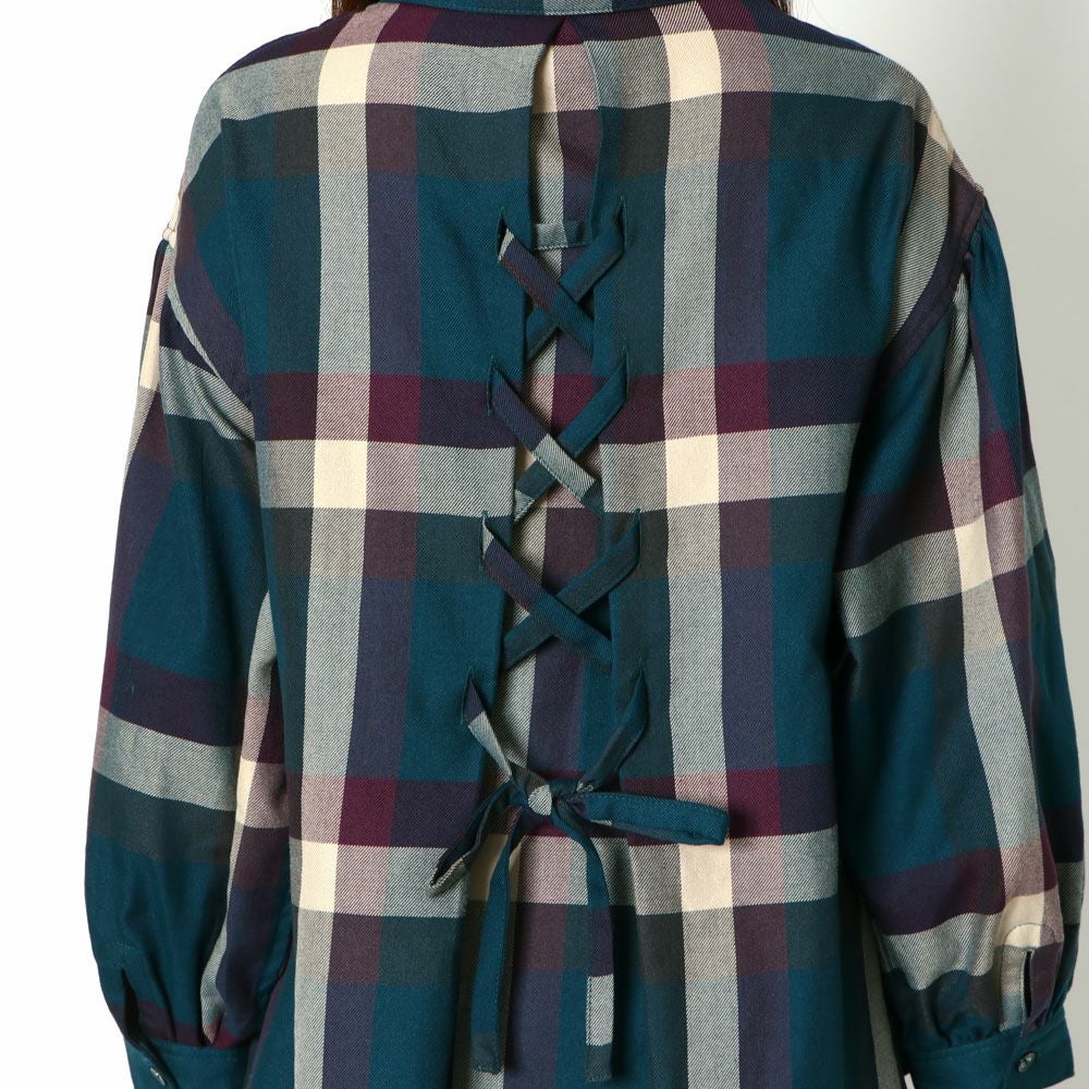 デカチェックバックレースシャツ