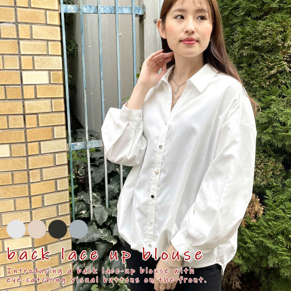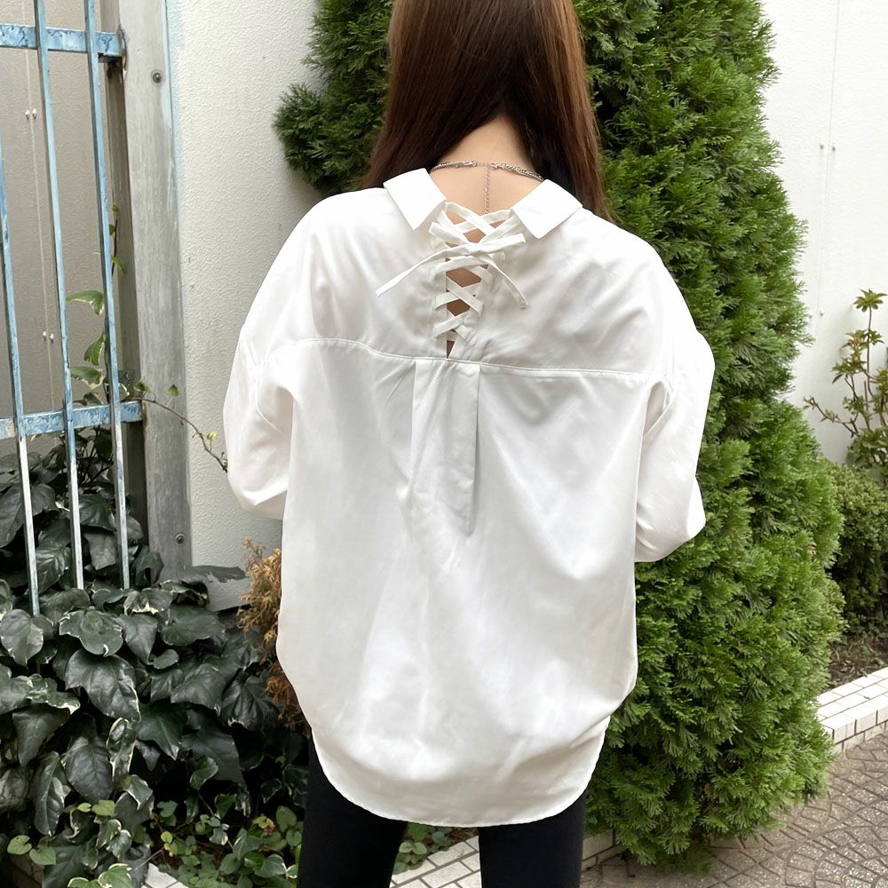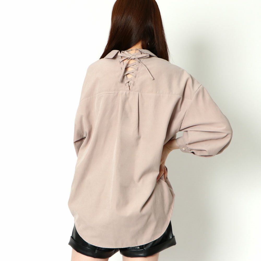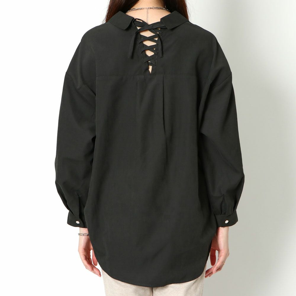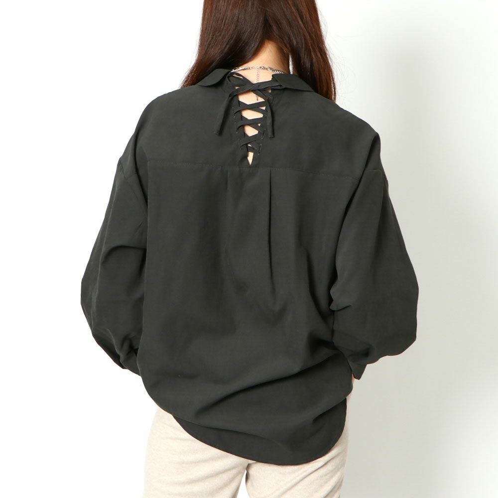 多種ボタンバックレースアップシャツ