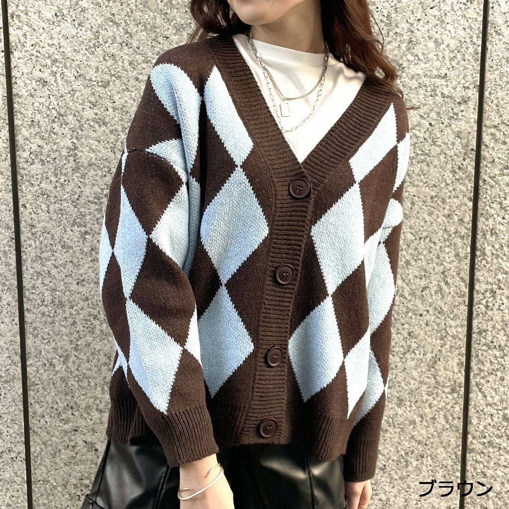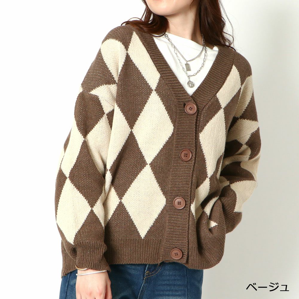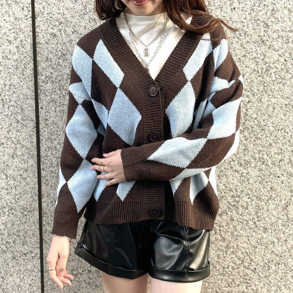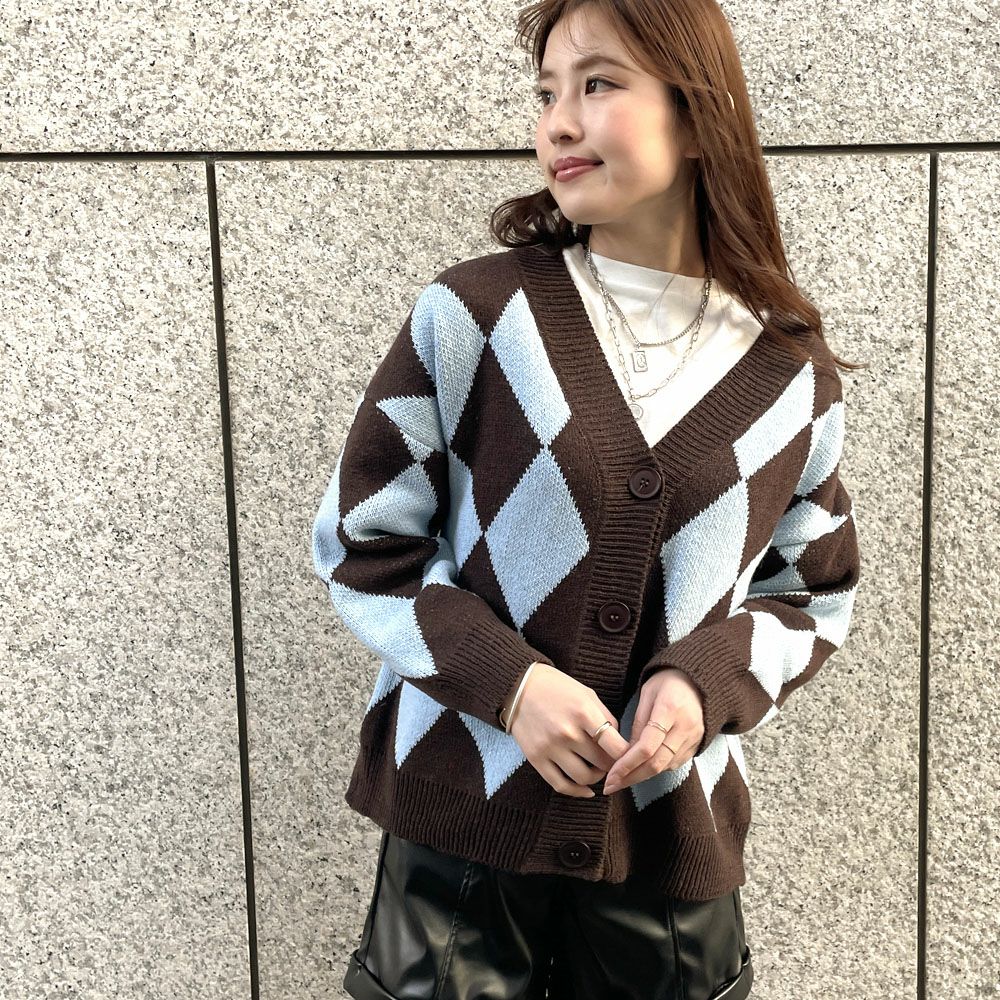 ダイア柄ニットカーディガン