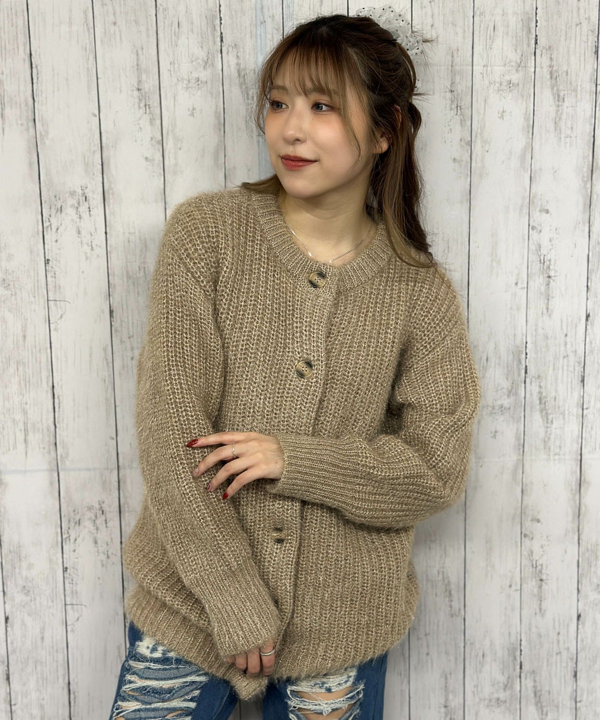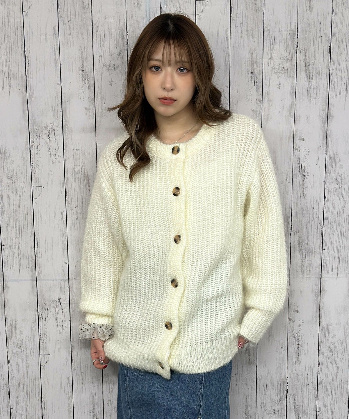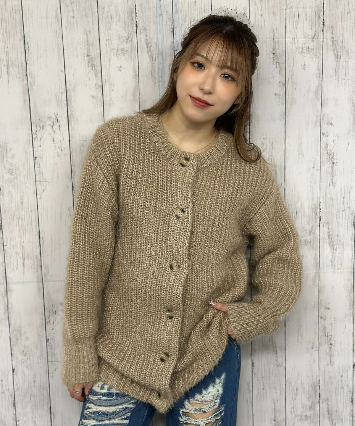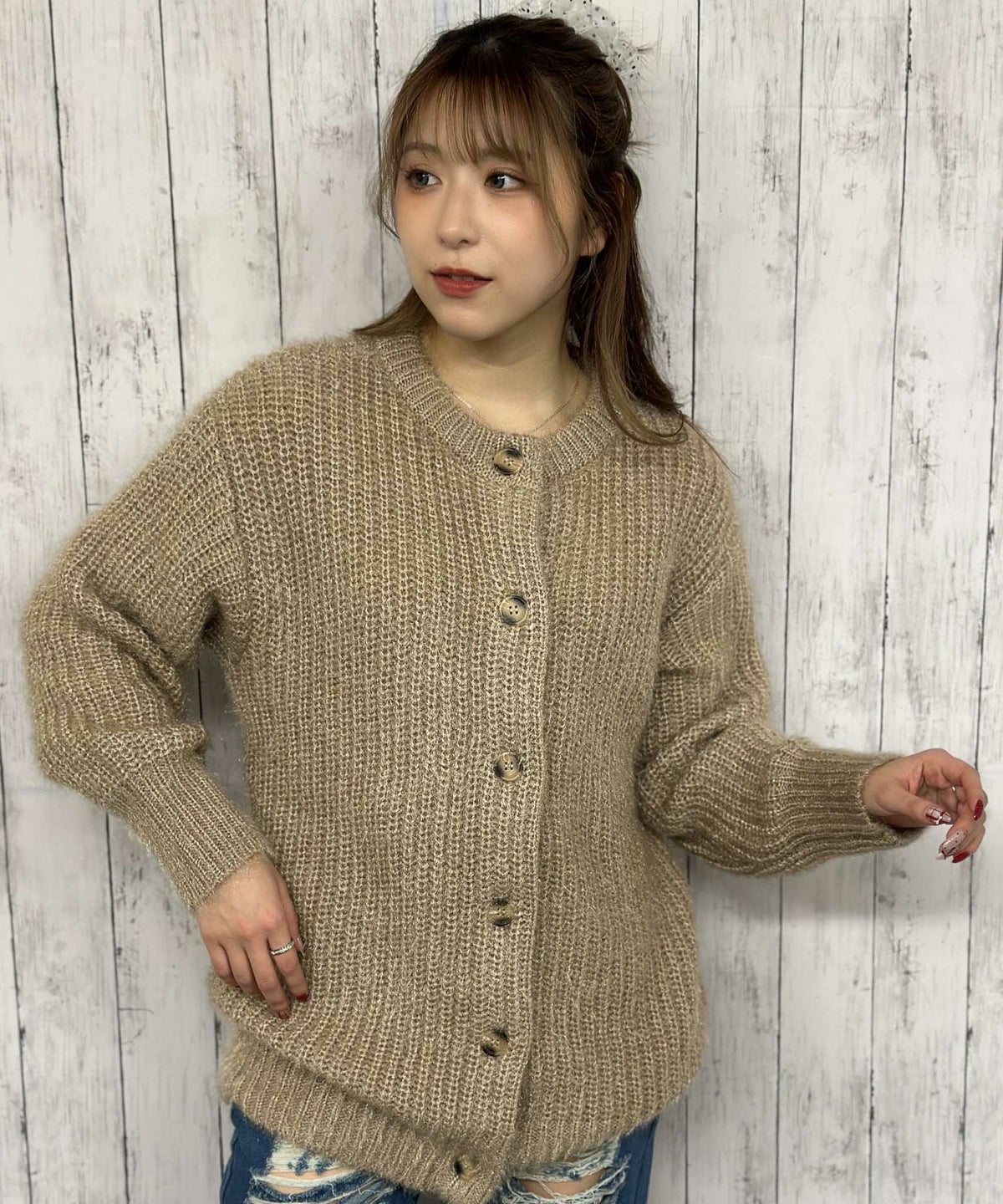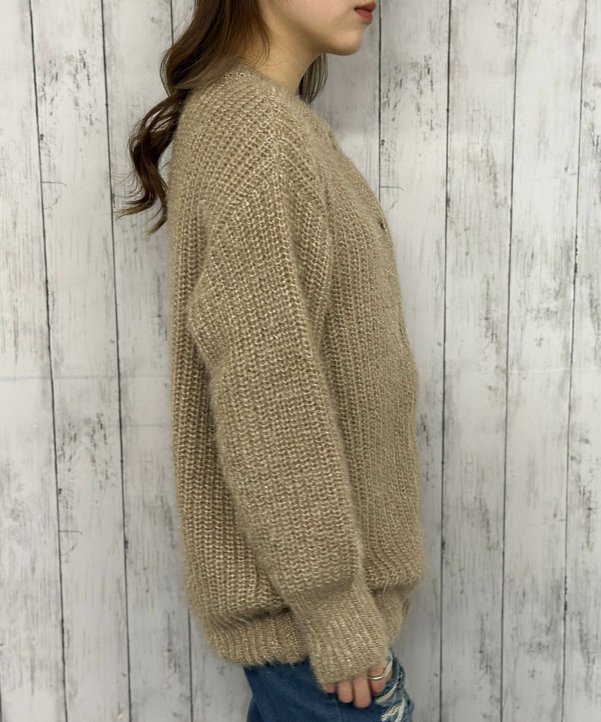 モヘアクルーカーディガン