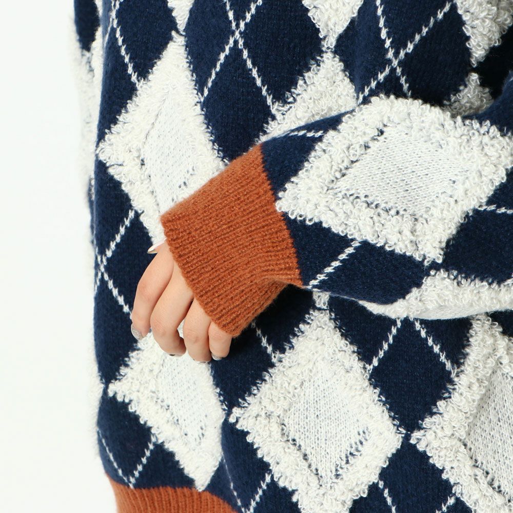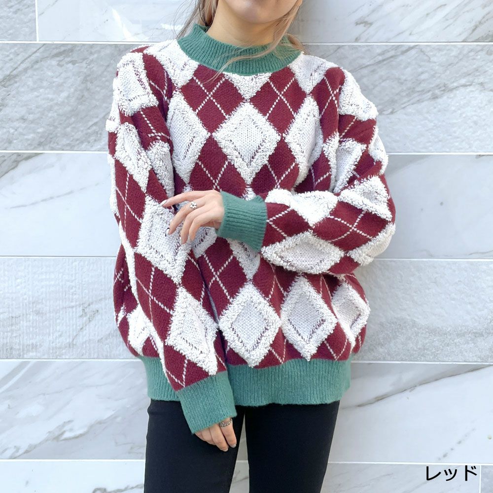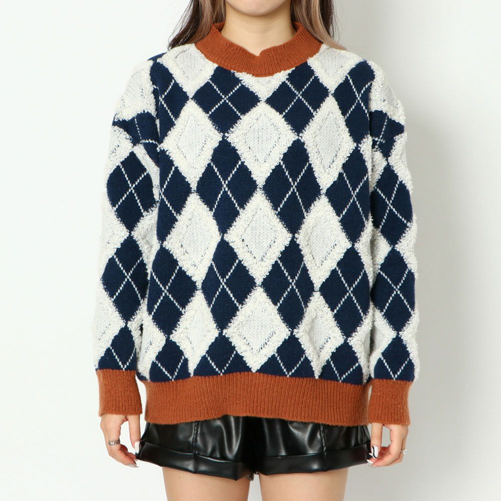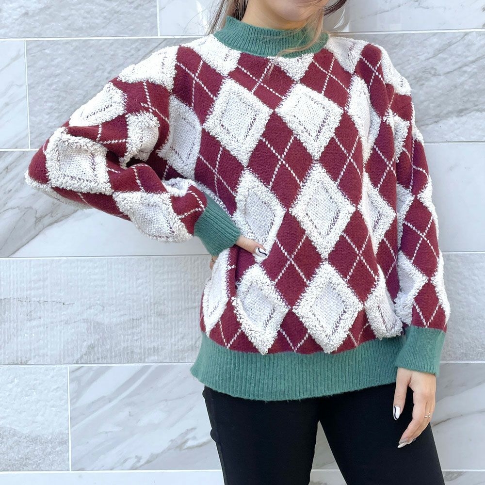 ハイネックアーガイル柄ニットプルオーバー