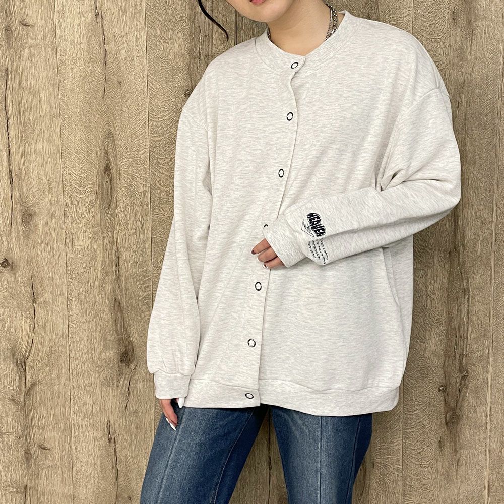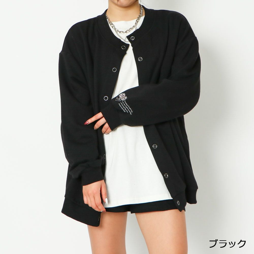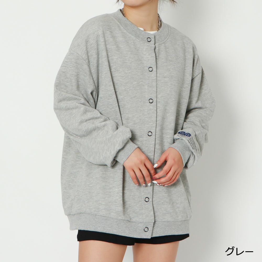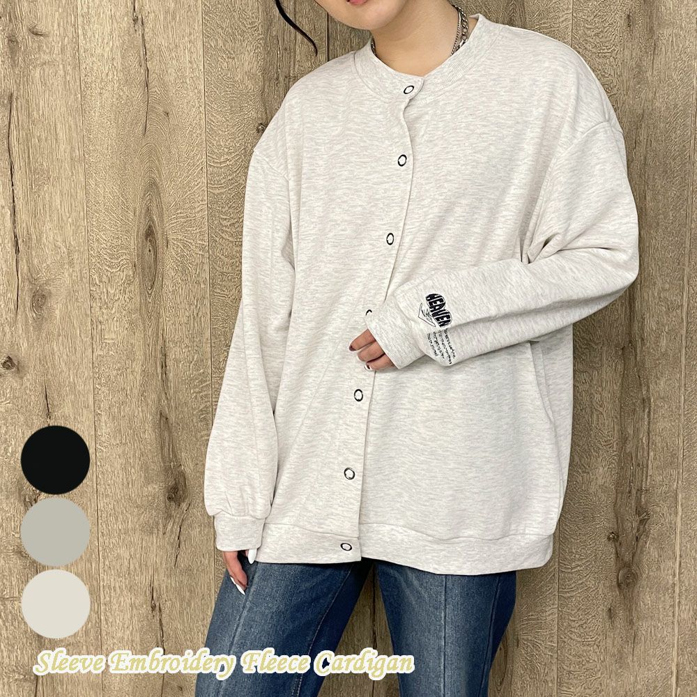 袖刺しゅう裏毛カーディガン