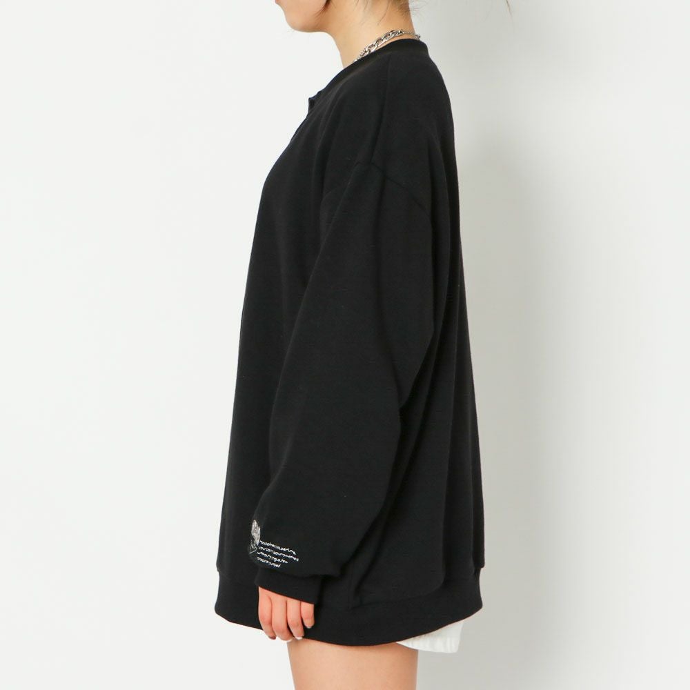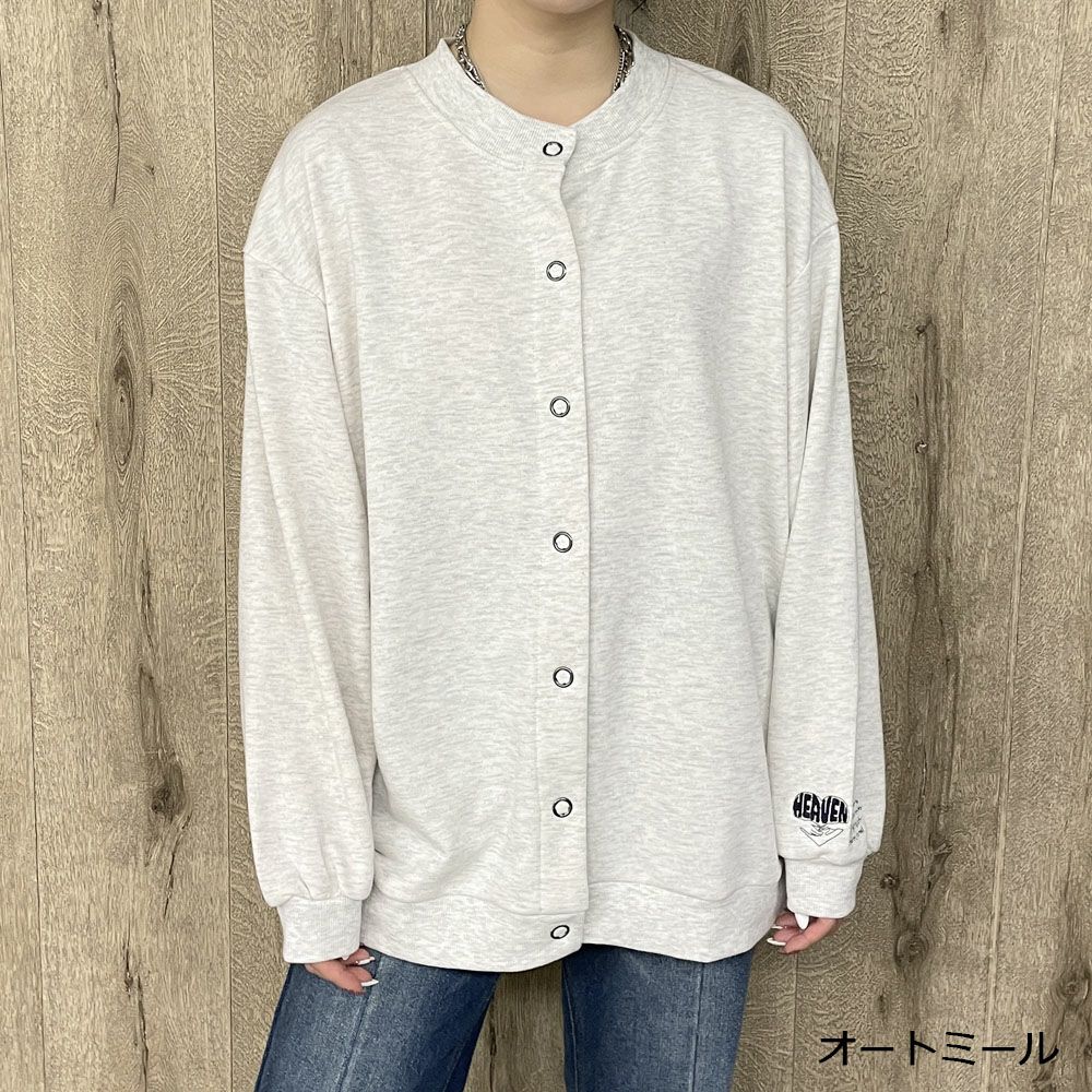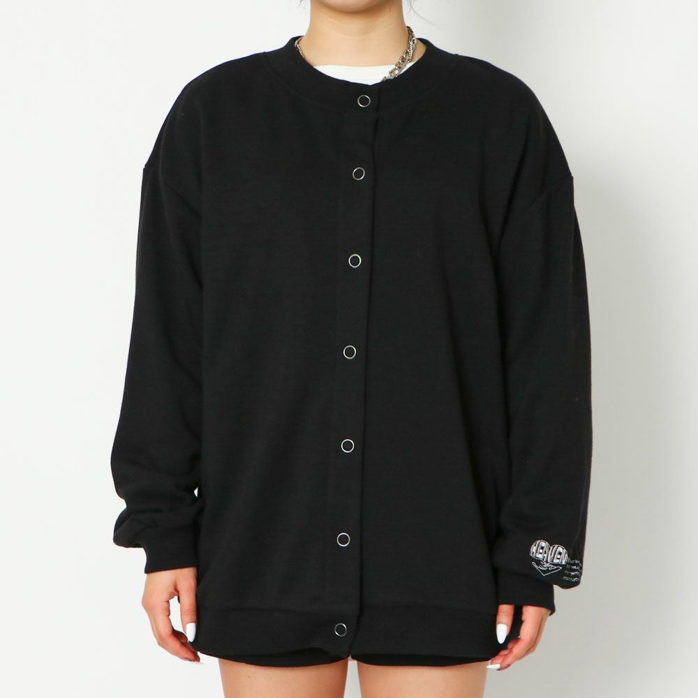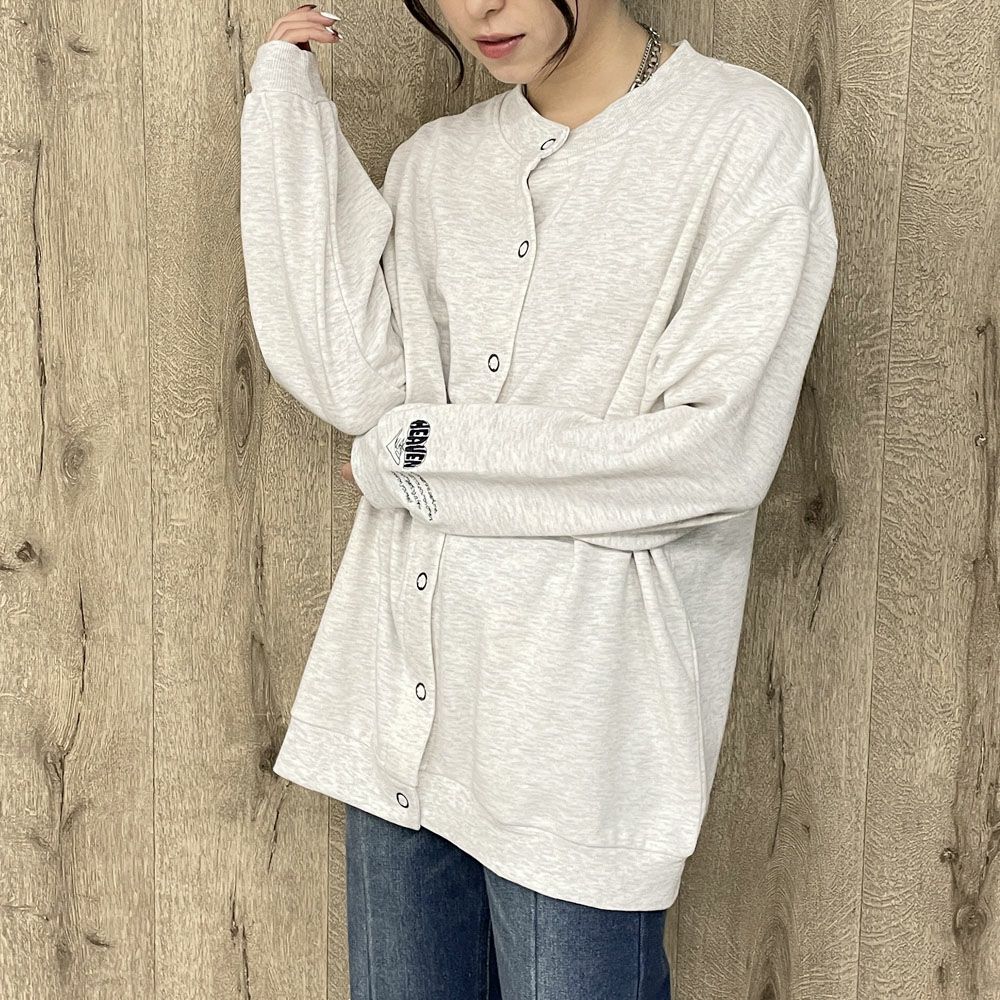 袖刺しゅう裏毛カーディガン
