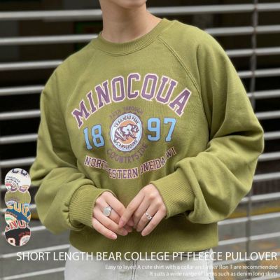 短丈クマカレッジプリント裏毛プルオーバーのレビューを書く
