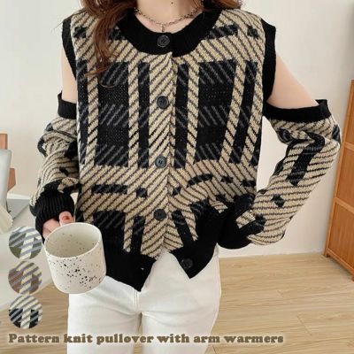 アームウォーマー付き柄ニットプルオーバーのレビューを書く