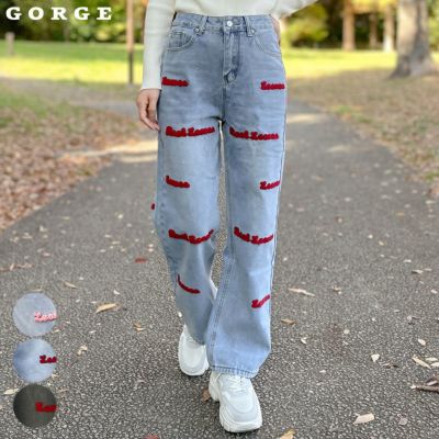 《ロゴサガラ刺繍×ストレート》レディース デニムパンツ ワイド ハイウエスト 春夏秋冬のレビューを書く