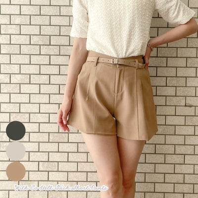 《美脚×脚長シルエット》レディース 共ベルト付き タックショートパンツ ハイウエスト 春夏秋 のレビューを書く