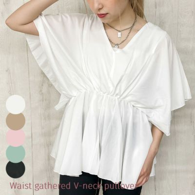《ウエストギャザー×フレア袖》レディース Vネックプルオーバー 体型カバー 春夏秋 のレビューを書く
