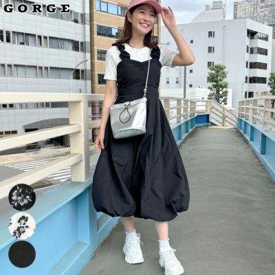 《バルーン裾×肩フリル》レディース キャミワンピース ロング丈 花柄 春夏秋 体型カバー のレビューを書く