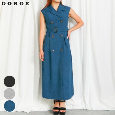 《ダブルボタン×共布ベルト》レディース ノースリーブ ロングジレワンピース スラブ生地 きれいめ 春夏秋のレビューを書く