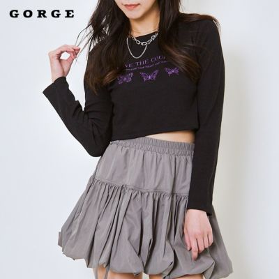 《バタフライ刺繍×ショート丈》レディース 長袖Tシャツ クロップド 春秋 のレビューを書く