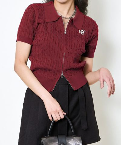 《ダブルジップ×ロゴ刺繍》ストリートニットトップ/WZIPカーデ のレビューを書く