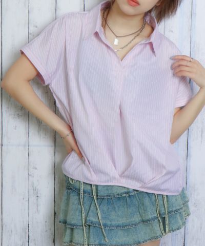 スキッパーシャツ/フロントひねりデザイン×抜け感シルエット のレビューを書く