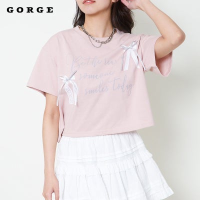 《ロゴ×リボンアレンジ》クロップドTシャツ/映えカジュアルのレビューを書く