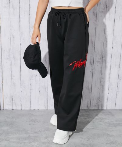 《裾ドローコード×刺繍アクセント》レディース ハリ感スウェットパンツ 楽ちん美脚 春夏秋冬のレビューを書く