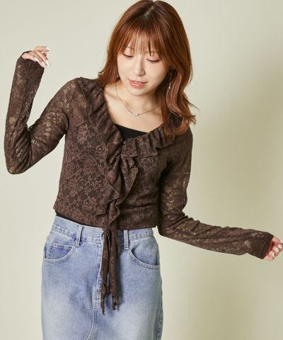 《レース×フリル前結び》レディース カーディガン シアー 羽織り トップス 春夏秋のレビューを書く