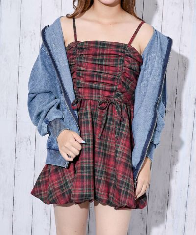 《微起毛チェック×ギャザー》レディース キャミワンピ ミニ丈 体型カバー 秋冬のレビューを書く