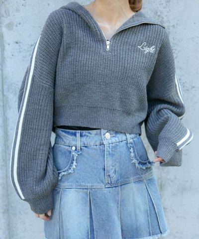 《バックロゴ刺繍×ラインデザイン》レディース ハーフジップ 短丈ニット スポーティ 春秋冬のレビューを書く