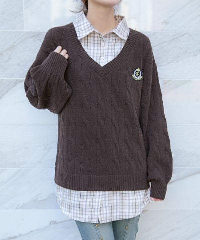 《ドッキング風レイヤード》レディース ケーブルニット チュニック トップス 秋冬のレビューを書く