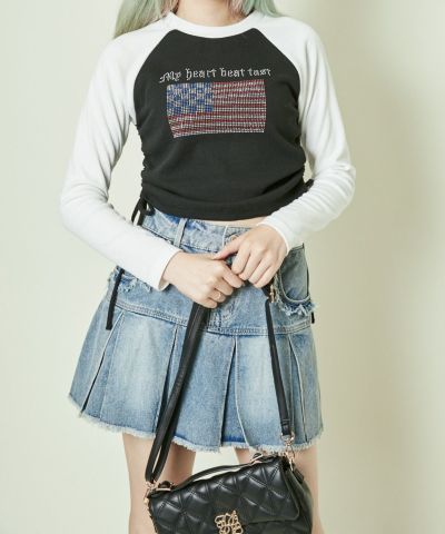 《ラインストーン×ドロストデザイン》レディース テレコ 長袖トップス クロップド丈 春秋のレビューを書く