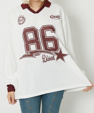 《衿付き×メッシュ》レディース ナンバーロゴ プルオーバー スポーティ カジュアル 春夏秋のレビューを書く