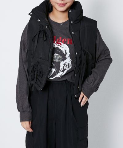 《ドロストリボン×中綿》レディース ベスト アウター ショート丈 体型カバー 秋冬のレビューを書く